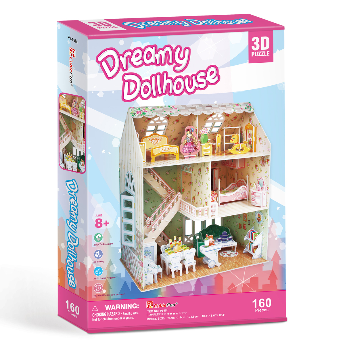3D пазлы от лидирующей инновационной компании CubicFun - высокий уровень детализации, качество самих деталей (детали надежно крепятся между собой без дополнительной фиксации, создавая единую конструкцию), стильный дизайн, а также информационная и образовательная составляющая. 3D пазл «Домик для куклы» из серии «Домики» c уровнем сложности 4 из 6. Набор содержит 160 объёмных деталей, а размер готового макета составляет 26 х 17 х 31,5 см. Серия «Домики» - это 3D пазлы с дополнительными игровыми элементами в виде мебели, миниатюрных фигурок, транспортом со средним уровнем сложности сборки. В комплекте 3D пазл с детальной инструкцией по сборке, пополнительные игровые элементы. 3D пазлы от CubicFun - это универсальный товар, удовлетворяющий потребности широкого круга потребителей: новый формат игры для детей, подростков и взрослых через знакомство с известными городами и достопримечательностями, развитие творческих навыков и внимания. Представлены с различными уровнями сложности, подходящими как любителям, так и профессиональным моделистам. 3D пазлы CubicFun станут отличным подарком близкому человеку.