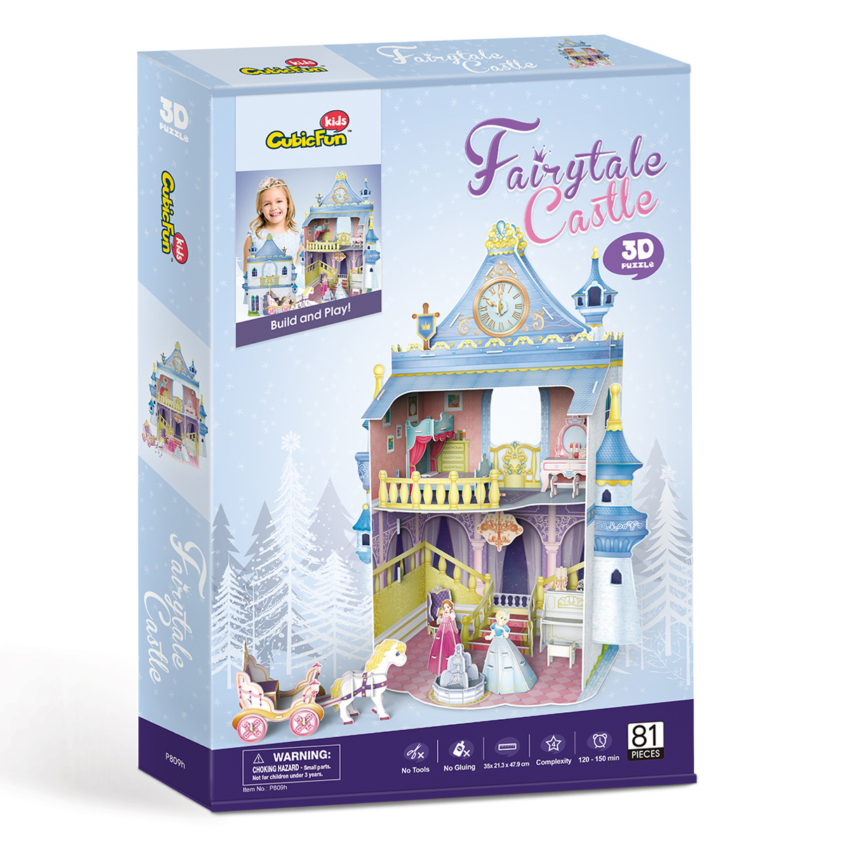 3D пазлы от лидирующей инновационной компании CubicFun - высокий уровень детализации, качество самих деталей (детали надежно крепятся между собой без дополнительной фиксации, создавая единую конструкцию), стильный дизайн, а также информационная и образовательная составляющая. 3D пазл «Замок принцессы» из серии «Домики» c уровнем сложности 4 из 6. Набор содержит 81 деталь, а размер готового макета составляет 35 х 21,3 х 47,9 см. Серия «Домики» - это 3D пазлы с дополнительными игровыми элементами в виде мебели, миниатюрных фигурок, транспортом со средним уровнем сложности сборки. В комплекте 3D пазл с детальной инструкцией по сборке, дополнительные игровые элементы. 3D пазлы от CubicFun - это универсальный товар, удовлетворяющий потребности широкого круга потребителей: новый формат игры для детей, подростков и взрослых через знакомство с известными городами и достопримечательностями, развитие творческих навыков и внимания. Представлены с различными уровнями сложности, подходящими как любителям, так и профессиональным моделистам. 3D пазлы CubicFun станут отличным подарком близкому человеку.