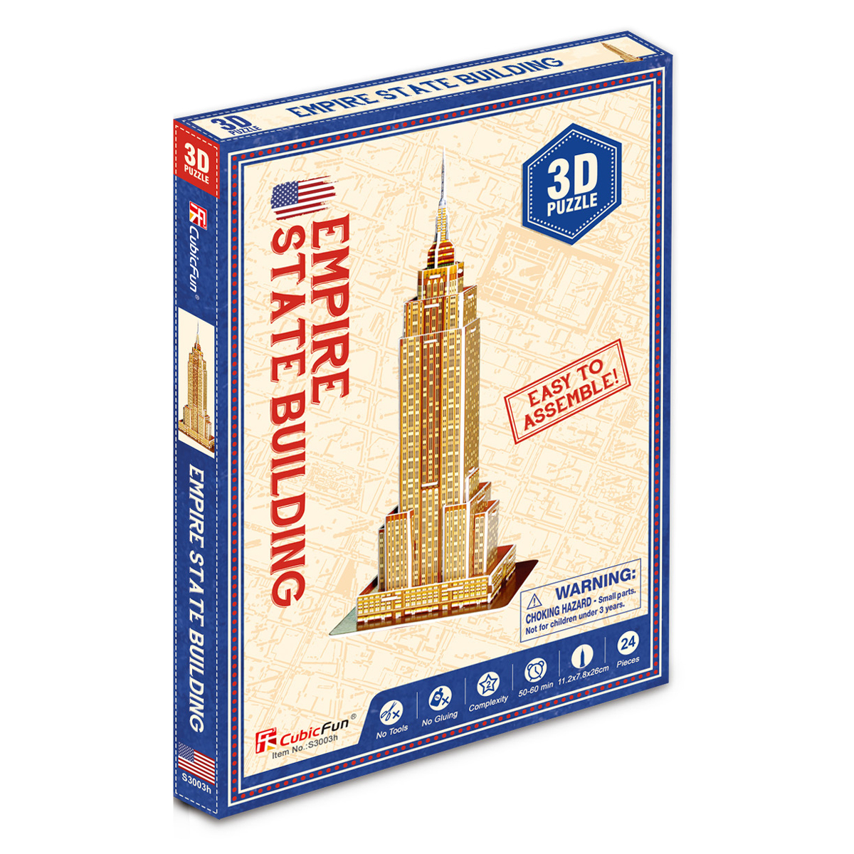 3D пазлы от лидирующей инновационной компании CubicFun - высокий уровень детализации, качество самих деталей (детали надежно крепятся между собой без дополнительной фиксации, создавая единую конструкцию), стильный дизайн, а также информационная и образовательная составляющая. 3D пазл нью-йоркской достопримечательности – Эмпайр-стейт-билдинг из серии World's Great Architectures - S Series c уровнем сложности 2 из 7. Набор содержит 24 детали, а размер готового макета составляет 11,2 х 7,8 х 26 см. World's Great Architectures - S Series – это базовая серия мировых достопримечательностей с самой легкой сборкой 3D моделей. В комплекте 3D пазл с детальной инструкцией по сборке. 3D пазлы от CubicFun - это универсальный товар, удовлетворяющий потребности широкого круга потребителей: новый формат игры для детей, подростков и взрослых через знакомство с известными городами и достопримечательностями, развитие творческих навыков и внимания. Представлены с различными уровнями сложности, подходящими как любителям, так и профессиональным моделистам. 3D пазлы CubicFun станут отличным подарком близкому человеку.