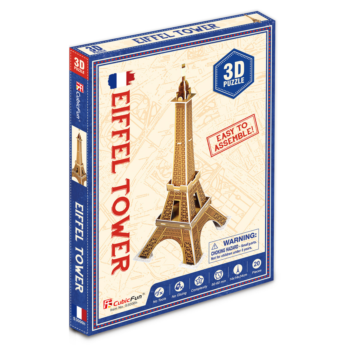 3D пазлы от лидирующей инновационной компании CubicFun - высокий уровень детализации, качество самих деталей (детали надежно крепятся между собой без дополнительной фиксации, создавая единую конструкцию), стильный дизайн, а также информационная и образовательная составляющая. 3D пазл Эйфелева башня из серии World's Great Architectures - S Series c уровнем сложности 2 из 7. Набор содержит 20 объёмных деталей, а размер готового макета составляет 14 х 14 х 34 см. World's Great Architectures - S Series – это базовая серия мировых достопримечательностей с самой легкой сборкой 3D моделей. В комплекте 3D пазл с детальной инструкцией по сборке. 3D пазлы от CubicFun - это универсальный товар, удовлетворяющий потребности широкого круга потребителей: новый формат игры для детей, подростков и взрослых через знакомство с известными городами и достопримечательностями, развитие творческих навыков и внимания. Представлены с различными уровнями сложности, подходящими как любителям, так и профессиональным моделистам. 3D пазлы CubicFun станут отличным подарком близкому человеку.