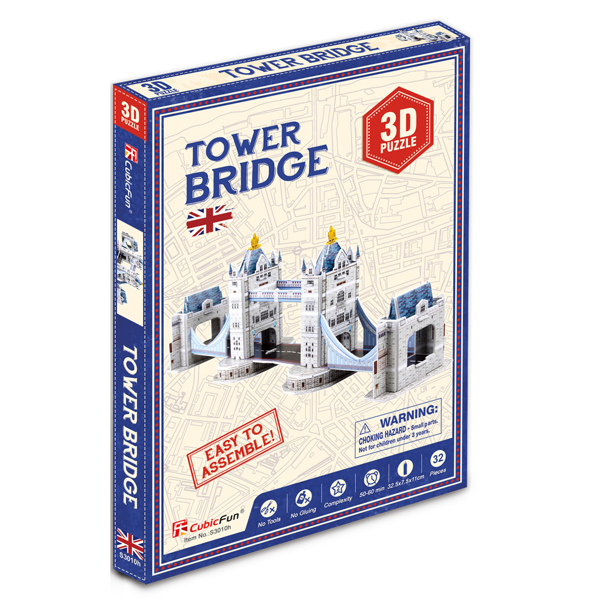 3D пазлы от лидирующей инновационной компании CubicFun - высокий уровень детализации, качество самих деталей (детали надежно крепятся между собой без дополнительной фиксации, создавая единую конструкцию), стильный дизайн, а также информационная и образовательная составляющая. 3D пазл Тауэрский мост из серии World's Great Architectures - S Series c уровнем сложности 2 из 7. Набор содержит 32 детали, а размер готового макета составляет 32,5 х 7,5 х 11 см. World's Great Architectures - S Series – это базовая серия мировых достопримечательностей с самой легкой сборкой 3D моделей. В комплекте 3D пазл с детальной инструкцией по сборке. 3D пазлы от CubicFun - это универсальный товар, удовлетворяющий потребности широкого круга потребителей: новый формат игры для детей, подростков и взрослых через знакомство с известными городами и достопримечательностями, развитие творческих навыков и внимания. Представлены с различными уровнями сложности, подходящими как любителям, так и профессиональным моделистам. 3D пазлы CubicFun станут отличным подарком близкому человеку.