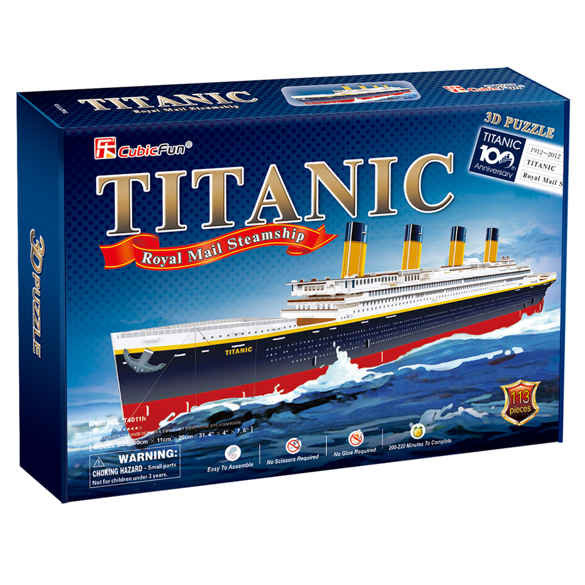 3D пазлы от лидирующей инновационной компании CubicFun - высокий уровень детализации, качество самих деталей (детали надежно крепятся между собой без дополнительной фиксации, создавая единую конструкцию), стильный дизайн, а также информационная и образовательная составляющая. Большой 3D пазл круизного лайнера «Титаник» из серии «Корабли» c уровнем сложности 7 из 7. Набор содержит 113 объёмных деталей, а размер готового макета составляет 80 х 11 х 20 см. Серия «Корабли» - это большой ассортимент знаменитых кораблей различных размеров и уровней сложности. В комплекте 3D пазл с детальной инструкцией по сборке. 3D пазлы от CubicFun - это универсальный товар, удовлетворяющий потребности широкого круга потребителей: новый формат игры для детей, подростков и взрослых через знакомство с известными городами и достопримечательностями, развитие творческих навыков и внимания. Представлены с различными уровнями сложности, подходящими как любителям, так и профессиональным моделистам. 3D пазлы CubicFun станут отличным подарком близкому человеку.