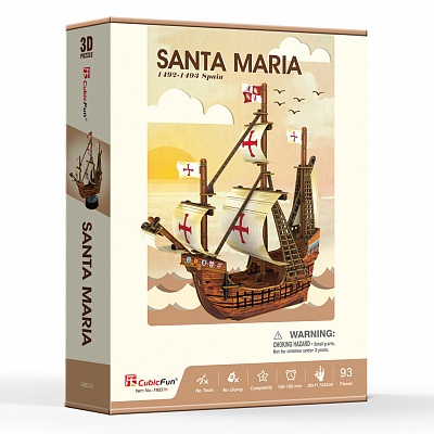 3D пазлы от лидирующей инновационной компании CubicFun - высокий уровень детализации, качество самих деталей (детали надежно крепятся между собой без дополнительной фиксации, создавая единую конструкцию), стильный дизайн, а также информационная и образовательная составляющая. 3D пазл корабль «Санта-Мария» из серии «Корабли» c уровнем сложности 4 из 6. Набор содержит 93 детали, а размер готового макета составляет 26 х 11,7 х 32 см. Серия «Корабли» - это большой ассортимент знаменитых кораблей различных размеров и уровней сложности. В комплекте 3D пазл с детальной инструкцией по сборке. 3D пазлы от CubicFun - это универсальный товар, удовлетворяющий потребности широкого круга потребителей: новый формат игры для детей, подростков и взрослых через знакомство с известными городами и достопримечательностями, развитие творческих навыков и внимания. Представлены с различными уровнями сложности, подходящими как любителям, так и профессиональным моделистам. 3D пазлы CubicFun станут отличным подарком близкому человеку.