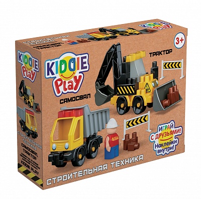 Конструктор KiddiePlay – это многообразие деталей, легкость сборки, совместимость с другими конструкторами серии, с которыми можно создать невероятное количество комбинаций в увлекательном мире, где каждый ребенок сможет почувствовать себя настоящим строителем. • Специализированные машинки с двигающимися элементами: у трактора двигаются ковши и колеса, у самосвала легко откидывается кузов и подвижные колеса • Многофункциональный транспорт, выполненный в реалистичном дизайне с проработкой мельчайших деталей • Дополнительные игровые элементы: два мини-строителя, ограждения, кирпичики • Наклейки внутри набора • Прочные безопасные детали • Рекомендованный возраст: 3+ Комплектация: 57 деталей конструктора