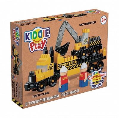 Конструктор KiddiePlay – это многообразие деталей, легкость сборки, совместимость с другими конструкторами серии, с которыми можно создать невероятное количество комбинаций в увлекательном мире, где каждый ребенок сможет почувствовать себя настоящим строителем. • Специализированные машинки с двигающимися элементами: у экскаватора подвижный ковш и колеса, у погрузчика – колеса • Многофункциональный транспорт, выполненный в реалистичном дизайне с проработкой мельчайших деталей • Дополнительные игровые элементы: ограждения, два строителя • Прочные безопасные детали • Наклейки внутри набора • Рекомендованный возраст: 3+ Комплектация: 81 деталь конструктора