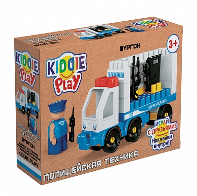 Конструктор KiddiePlay – это многообразие деталей, легкость сборки, совместимость с другими конструкторами серии, с которыми можно создать невероятное количество комбинаций в увлекательном мире, где каждый ребенок сможет почувствовать себя в роли полицейского. • Специализированная машинка с двигающимися элементами: подвижные колеса • Многофункциональный полицейский фургон, выполненный в реалистичном дизайне с проработкой мельчайших деталей • Дополнительные игровые элементы: полицейский, защитный щит, оружие • Прочные безопасные детали • Наклейки внутри набора • Рекомендованный возраст: 3+ Комплектация: 39 деталей конструктора