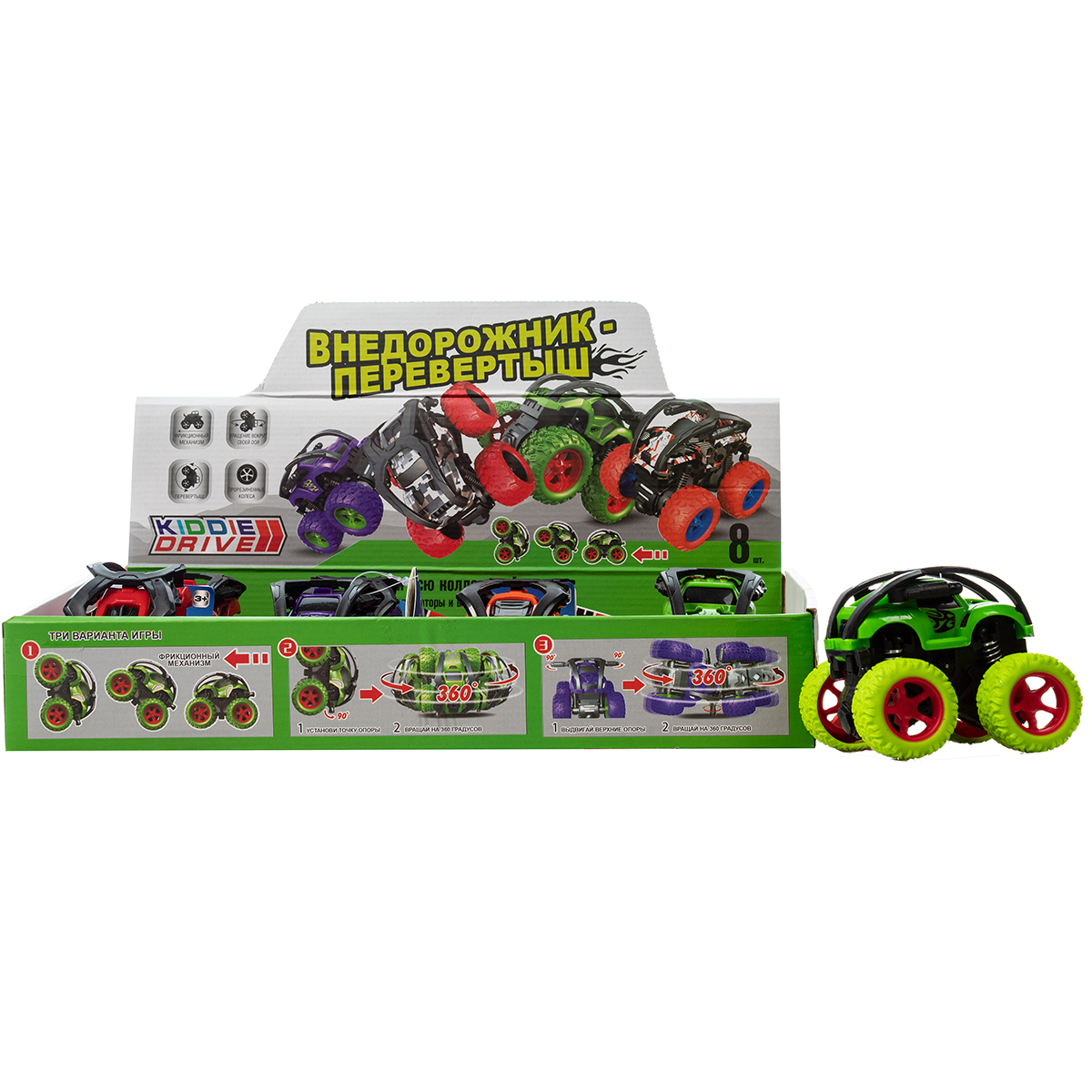 Пришло время крутых заездов с новым внедорожником-перевертышем от KiddieDrive! Мультифункциональная игрушка от KiddieDrive подарит ребенку множество увлекательных игровых сюжетов и море ярких эмоций. • Встречая препятствие (стенку или иную поверхность), внедорожник при помощи специальной конструкции на крыше кузова легко переворачивается и продолжает движение; • Вездеход имеет функцию вращения вокруг своей оси, что создает дополнительные игровые возможности для детей; • Игрушка имеет яркий, запоминающийся дизайн, воплощенный мощной конструкции и красном цвете внедорожника; • Внедорожник имеет прорезиненные большие колеса; • Детализация каждой части игрушки • Рекомендованный возраст:3+ В комплекте: внедорожник-перевертыш Big Wheels