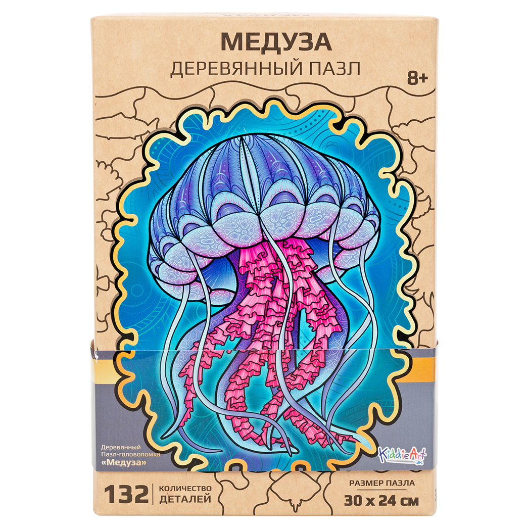 Деревянные фигурные пазлы от KiddieArt – это изображение реальных и сказочных персонажей. Каждый пазл выполнен в оригинальной форме, имеет особый фигурный рез, с помощью которого по мере сборки можно увидеть всю головоломку. Каждый сможет найти для себя пазл по интересам. В ассортименте представлены деревянные пазлы в виде животных, символов, строений и прочее. Подходят для детей от 8 лет и взрослых. Деталька к детальке и перед вами из пучины морской выплывает медуза с огненными щупальцами. Деревянный пазл в форме медузы – это классное решение, особенно, в моменты воспоминаний о море или океане. Содержит 132 детали.