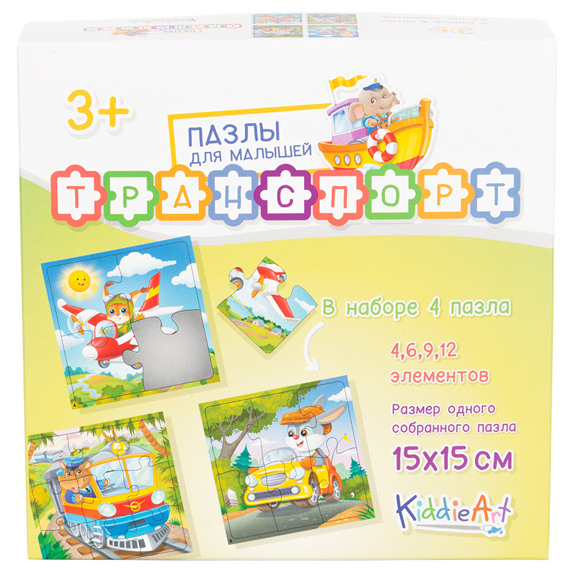 Картонные пазлы для малышей от KiddieArt – это отличный способ изучить окружающий мир. Каждый из 4-х пазлов выполнен в виде картинки с уникальным дизайном того или иного персонажа (времени года, профессии, транспорт и прочее), объединенных единой темой. Размер каждого собранного пазла составляет 15x15 см. Картонные пазлы с изображением самолета, машины, поезда и корабля помогут ребенку легко ориентироваться в транспорте. Подходит для детей от 3-х лет. Содержит 31 деталь.