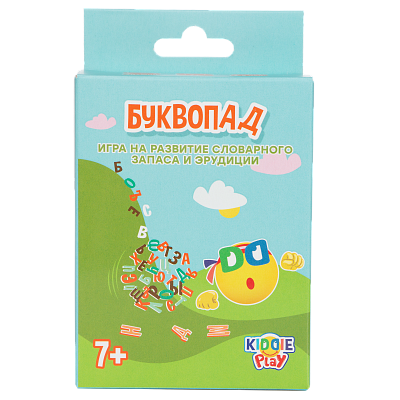 Увлекательная настольная игра с простыми правилами и понятной инструкцией на развитие словарного запаса, быстроту реакции, внимательность и эрудицию. Цель игры: быстрее всех собрать слова из букв на карточках и набрать наибольшее количество очков. Можно играть в упрощенной версии, где основная тактика – придумать как можно больше слов или более длинные слова. Настольные игры для детей KiddiePlay не дадут вам заскучать.