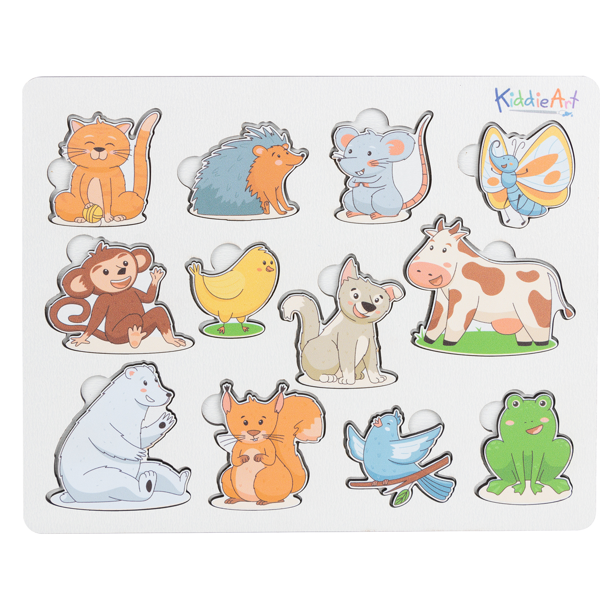 Развивающий двухслойный деревянный пазл с ассоциативными цепочками «Кто что ест?» для детей от 3-х лет KiddieArt. Под каждым из 12-ти животных и птиц прячутся 12 вкладышей с их повседневной едой. Все фигурки, как с героями, так и пищей легко вынимаются, став самостоятельными игровыми элементами. Благодаря специальному срезу малышу удобно вынимать и рассматривать каждую деталь пазла. Много возможных вариантов игр с ребенком: найти к каждому животному или птице подходящую еду, вставив фигурки в нужные слоты, составлять небольшие рассказы, используя несколько героев, соединив в историю ассоциативные цепочки, разделять героев по месту обитания и прочее. Деревянный пазл «Кто что ест?» развивает у ребенка мелкую моторику, внимание и усидчивость, формирует логические и коммуникативные навыки. Содержит основу и 24 детали высокого качества. Размер головоломки составляет 21x18 см.