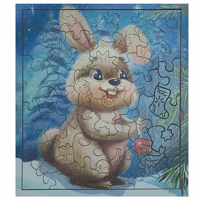 Фигурный деревянный пазл KiddieArt для детей от 3-х лет с ярким рисунком в виде пушистого серого крольчонка в заснеженном лесу, входящий в зимнюю коллекцию сказочных сюжетов. Каждая деталь имеет особый фигурный рез в виде зверюшек и новогодних мотивов, с помощью которого по мере сборки можно увидеть всю головоломку размером 21x18 cм. Пазл упакован в прозрачную термопленку, уберегая деревянные детали от влаги и пыли. Содержит основу и 40 деталей из экологически чистых материалов высокого качества. Сборка пазла помогает развивать у малыша мелкую моторику, внимание, усидчивость, формирует логические и коммуникативные навыки.