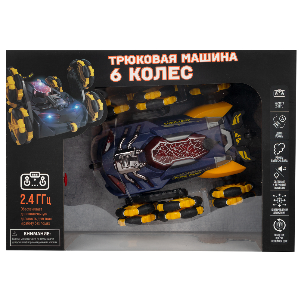 Приготовьтесь исполнить самые головокружительные трюки с новой радиоуправляемой машинкой от Властелин Небес! Маневренность, скорость, яркий дизайн – все это новая трюковая машинка «Паук». С такой игрушкой ребенок будет полностью погружен в увлекательный игровой процесс. Игрушка радиоуправляема. Машинка имеет оригинальный дизайн, колеса выполнены в желто-черном цвете, корпус –темно-синий. Машинка имеет световое и звуковое сопровождение. Машинка имеет 10 направлений движения вращается вокруг своей оси на 360 градусов. Игрушка имеет функцию выпуска пара. Большие колеса машинки позволят ребенку играть на любой поверхности. Игрушка изготовлена из качественных материалов. Рекомендованный возраст: 6+