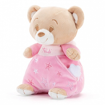 Trudi Baby Star - это серия, посвященная детским мечтам, где каждая деталь игрушек будто рассказывает о самых теплых детских воспоминаниях. Плюшевый мишка в нежно-розовой одежде выполнен в приглушенных пастельных оттенках с мягкими линиями и деталями в виде звезд станет истинным проводником в самые добрые сны малыша. Рекомендуется машинная стирка при 30° без сушки и глажки.