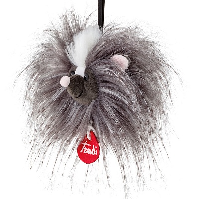 Мягкая игрушка в виде скунса, состоящего из очень пушистого тельца. Его забавный вид, торчащий розовый носик и розовые ушки непременно сразу смогут завоевать симпатию ребенка. Можно использовать в качестве небольшой игрушки на верёвочке, а также оригинального брелока на рюкзак, ключи или сумку. Благодаря небольшому размеру удобно брать с собой в дорогу, используя и в качестве антистресса, нежно поглаживая по искусственному меху. Отличный подарок для детей и взрослых.