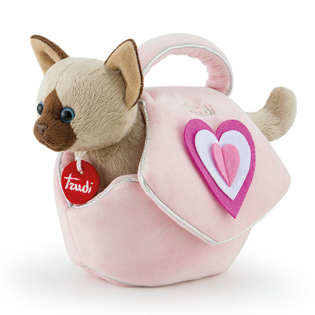 Голубоглазый плюшевый котенок сиамской породы в элегантной переноске нежно-розового оттенка покорит девичьи сердечки. Бежево-коричневая шерстка, добродушный взгляд, игривый характер и мягкий плюш внутри сделают котенка любимцем маленьких хозяек, в особенности тех, кто так давно мечтает о реалистичном животном. Благодаря переноске можно взять любопытного питомца с собой на прогулку, брать в руки и обнимать, даря свою любовь. Игрушка имеет размер 28 см и сможет стать отличным подарком. Мягкая игрушка будет не просто пушистой игрушкой, а настоящим другом, с которым можно играть бесконечно. Рекомендуется машинная стирка при 30° без сушки и глажки