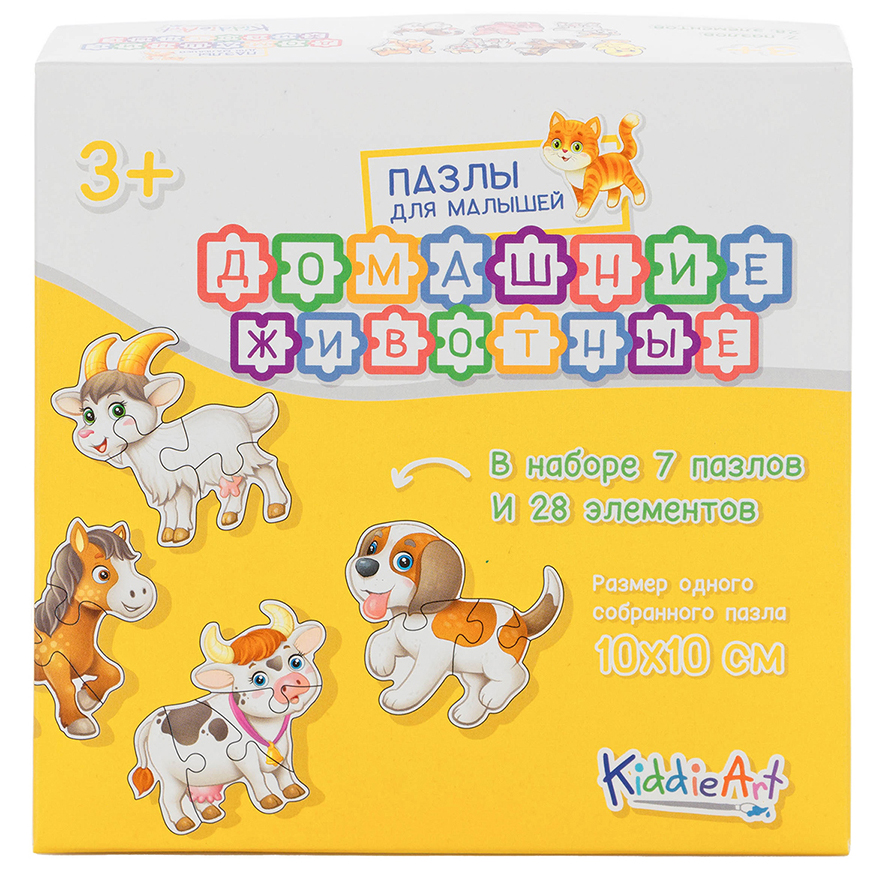 Картонные пазлы для малышей от KiddieArt – это отличный способ изучить окружающий мир. Каждый пазл выполнен в уникальном дизайне в виде персонажа (животных, фруктов, транспортных средств и прочее), собирается из нескольких деталей, с помощью которых по мере сборки можно увидеть всю головоломку размером 10x10см. Любознательный ребенок очень быстро сможет собрать 7 домашних животных из набора и узнать, кто из них обитает на ферме, а кто легко может жить в просторном доме или квартире. В набор входят 7 фигурок животных: корова, коза, свинка, цыпленок, лошадка, кот и собака. Подходит для детей от 3-х лет. Содержит 28 деталей.