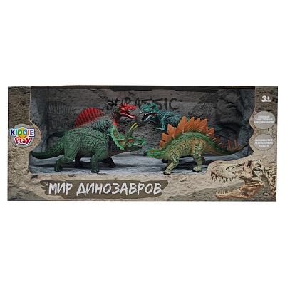 Отправляйтесь в удивительное путешествие в эпоху величественных и могучих динозавров! 4 детально проработанных динозавра позволят ребенку построить множество увлекательных игровых сценариев и ситуаций. Игрушка развивает фантазию и воображение ребенка. Набор является частью коллекции KiddiePlay «Мир динозавров». Соберите всех древних рептилий! Рекомендованный возраст: 3+. В наборе 4 фигурки: спинозавр, трицератопс, тираннозавр, стегозавр.