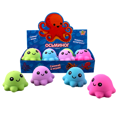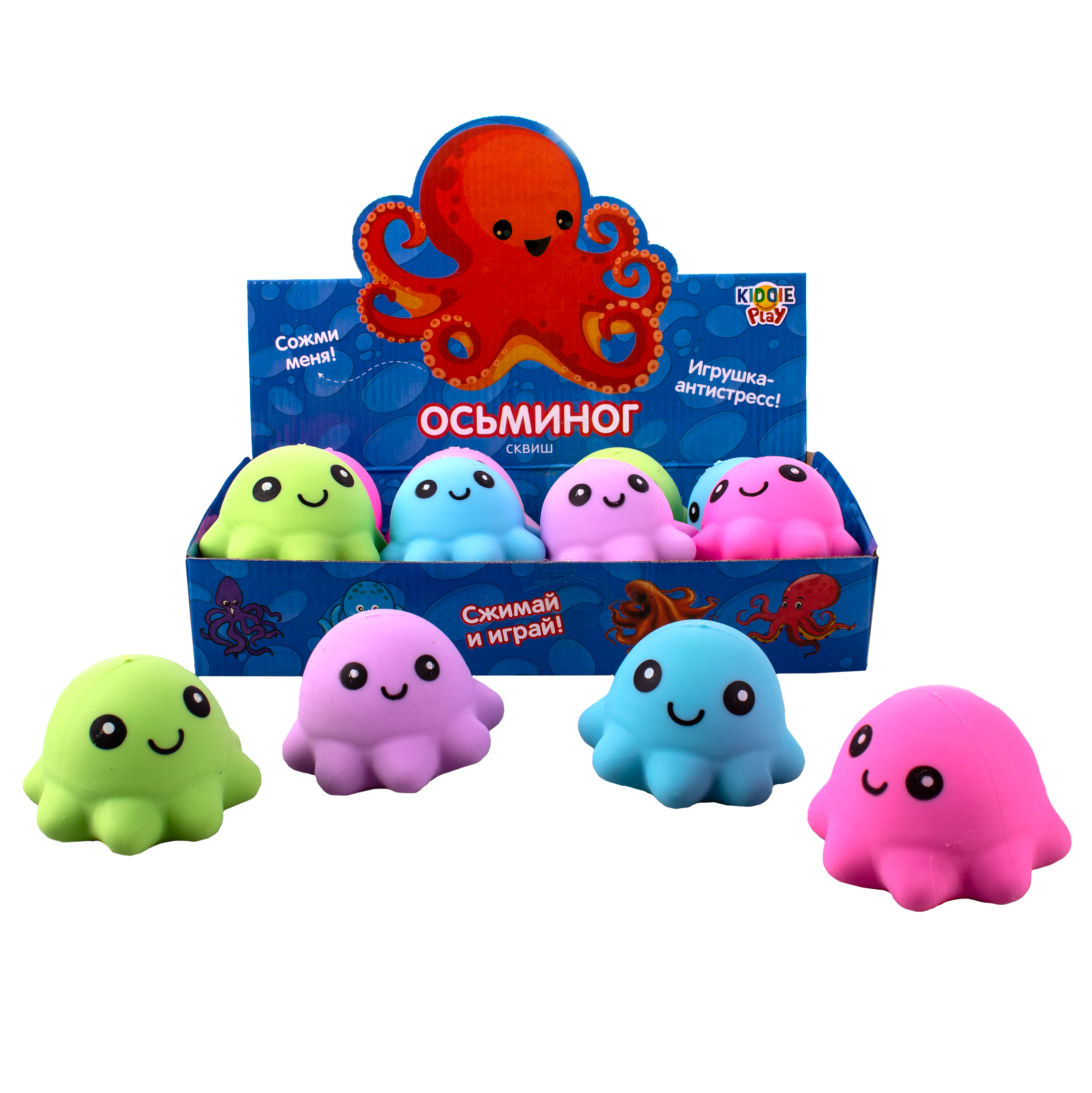 "Арт. 32633. Игрушка-сквиш “Осьминог”. Новая игрушка от KiddiePlay сразу привлекает к себе внимание ярким цветом и милой мордочкой осьминога. Эта милая игрушка точно поднимет настроение ребенку и создаст множество весёлых игровых сюжетов. • Игрушка представлена в 4 разных цветах: фиолетовый, голубой, зелёный и розовый; • Игрушка является антистрессом. Взаимодействие с ней развивает мелкую моторику, при занятии с ней снимается напряжение; • Игрушка выполнена из качественных материалов; • Легко сжимается и принимает первоначальную форму; • Рекомендованный возраст: 3+"