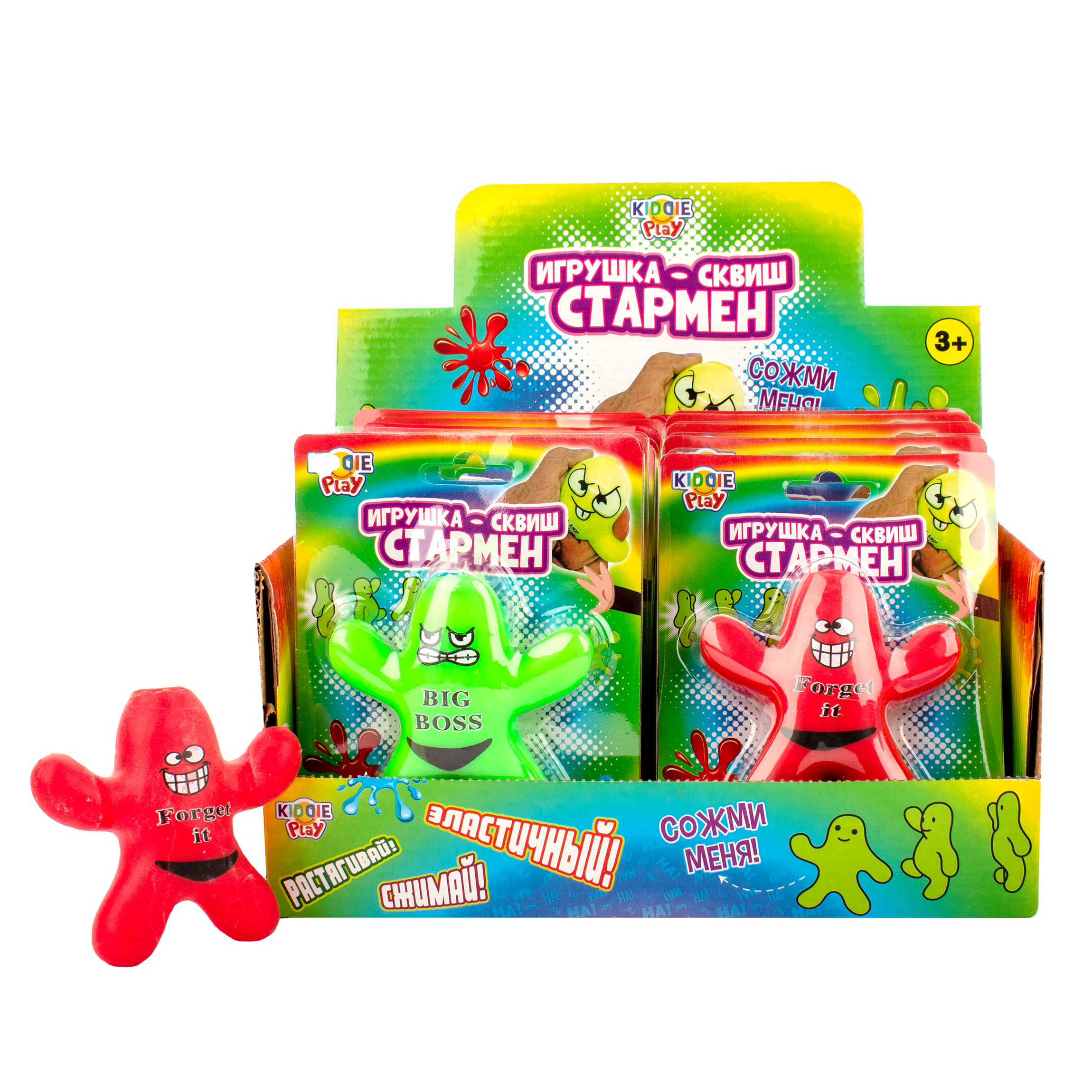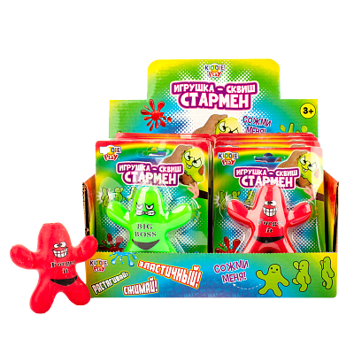 "Арт. 32642. Игрушка-сквиш “Стармен”. Клевая игрушка-сквиш от KiddiePlay точно поднимет настроение ребенку и создаст множество весёлых игровых сюжетов! Игрушка изготовлена из качественных материалов и имеет оригинальный дизайн. • Сквиш сделан из материала, который при сжатии легко возвращается в исходное состояние. • Эта игрушка отлично подходит для использования в качестве антистресса, так как позволяет расслабиться и снять напряжение. Кроме того, она может использоваться для развития моторики рук и координации движений. • Рекомендованный возраст: 3+"