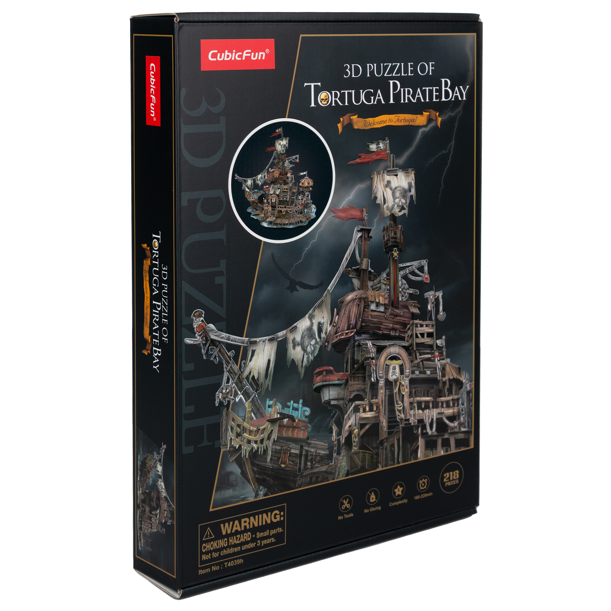 3D пазл Пиратский корабль Тортуга, 218 деталей. Отправляйтесь на известный пиратский остров Тортуга с новым 3D пазлом от CubicFun! Высокая детализация каждой части пазла позволит с головой погрузиться в увлекательный процесс сборки. Набор состоит из 218 деталей и станет прекрасным подарком не только для ребенка, но и для взрослого! 3Д Пазл в форме Тортуги – пиратского дома-корабля; Каждая часть пазла детально проработана, что способствует погружению в процесс его сборки; Высокое качество материалов, наряду с четкими, подробными инструкциями, позволяют легко собрать эту модель даже новичкам; Для сборки модели не потребуется клей или ножницы; Модель состоит из 218 деталей; Время сборки: 2+ часа; Размеры модели 48*39*27 см; Рекомендованный возраст: 10+