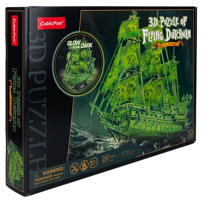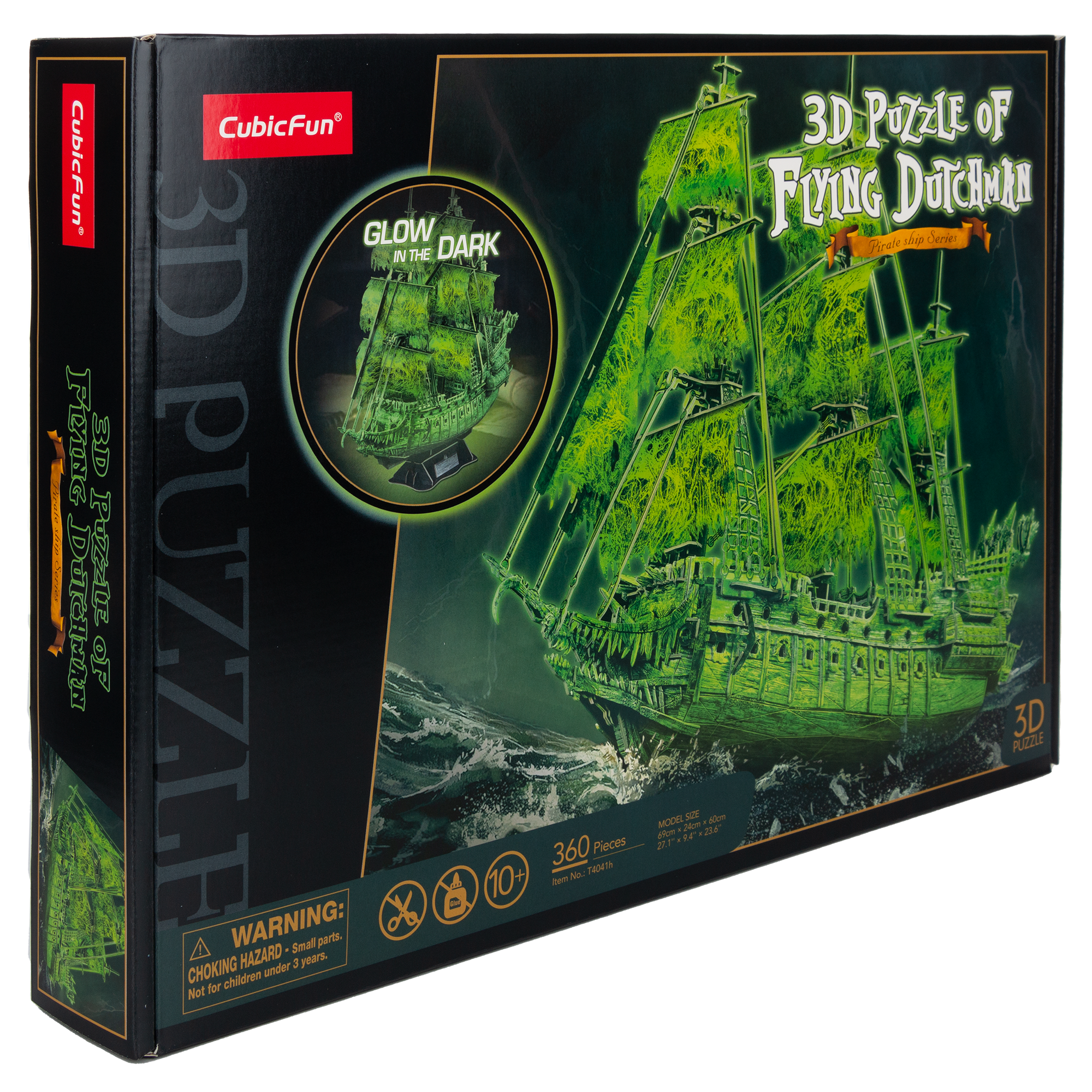 3D пазл Корабль Летучий Голландец (светится в темноте), 360 деталей. Легендарный пиратский корабль «Летучий Голландец» теперь можно собрать самому! Почувствуйте атмосферу захватывающих дух приключений, опасных миссий и бесконечного веселья с новым 3 D пазлом от CubicFun. Модель светится в темноте: Корабль в дневное время поглощает свет, а вечером или в темноте начинает светиться; Собранный пазл станет отличным украшением интерьера; Пазл имеет большое количество деталей, поэтому станет прекрасным подарком как для ребёнка, так и для взрослого; Высокое качество материалов, наряду с четкими, подробными инструкциями, позволяют легко собрать эту модель даже новичкам; Для сборки модели не потребуется клей или ножницы; Модель состоит из 360 деталей; Рекомендованный возраст: 10+