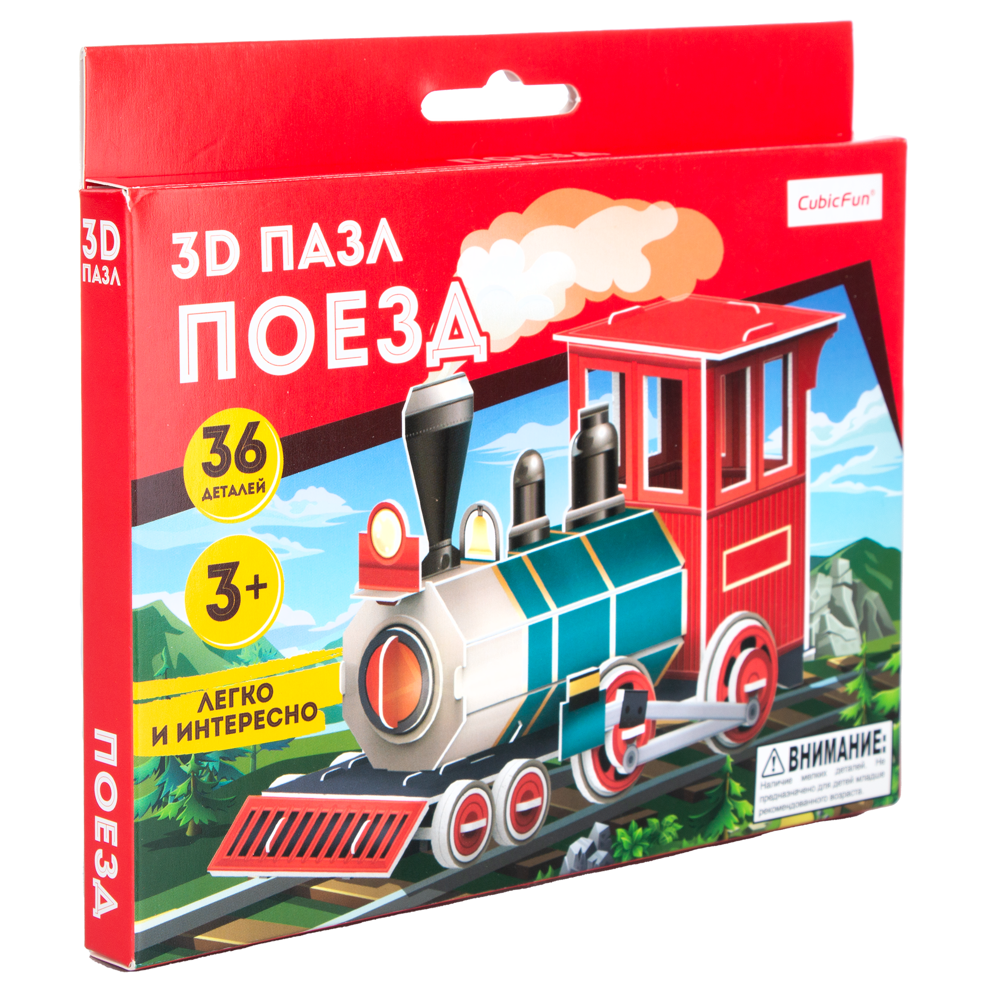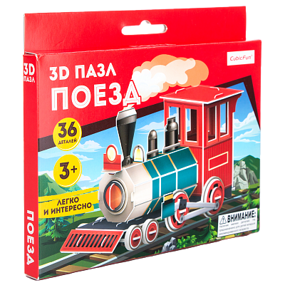 3D Пазл Поезд, 36 деталей. Новая серия компактных 3D пазлов от CubicFun отлично подойдет для сборки самым маленьким детям! Небольшое количество крупных деталей позволит ребенку запросто собрать красивый 3D пазл. Собранный пазл представляет из себя паровой поезд; Малыш с увлечением будет собирать красивые 3D пазлы; Высокое качество материалов, абсолютно безопасны для детей; Крупные детали и простая подробная инструкция позволит малышу легко собрать пазл даже самостоятельно; Для сборки модели не потребуется клей или ножницы; Сборка пазла развивает мелкую моторику ребенка; Модель состоит из 13 деталей; Рекомендованный возраст: 3+
