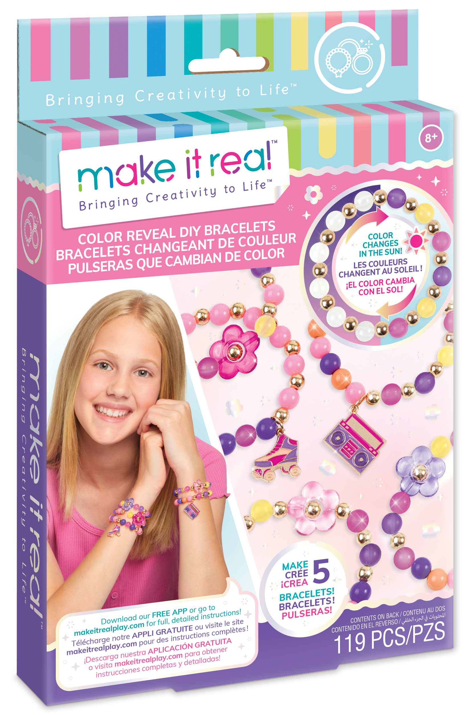 Новый набор для творчества от Make it Real Создай свои браслеты "Новый цвет" подарит юным дизайнерам возможность полностью раскрыть свой потенциал! Некоторые элементы из набора меняют цвет в зависимости от освещения, комбинируй их, создавай стильные и оригинальные браслеты и вдохновляй окружающих своим блеском! С набором «Новый цвет» можно создать 5 разных элегантных браслетов и поделиться ими со своими подругами. Прояви фантазию и изобретательность, придав блеск своему образу.