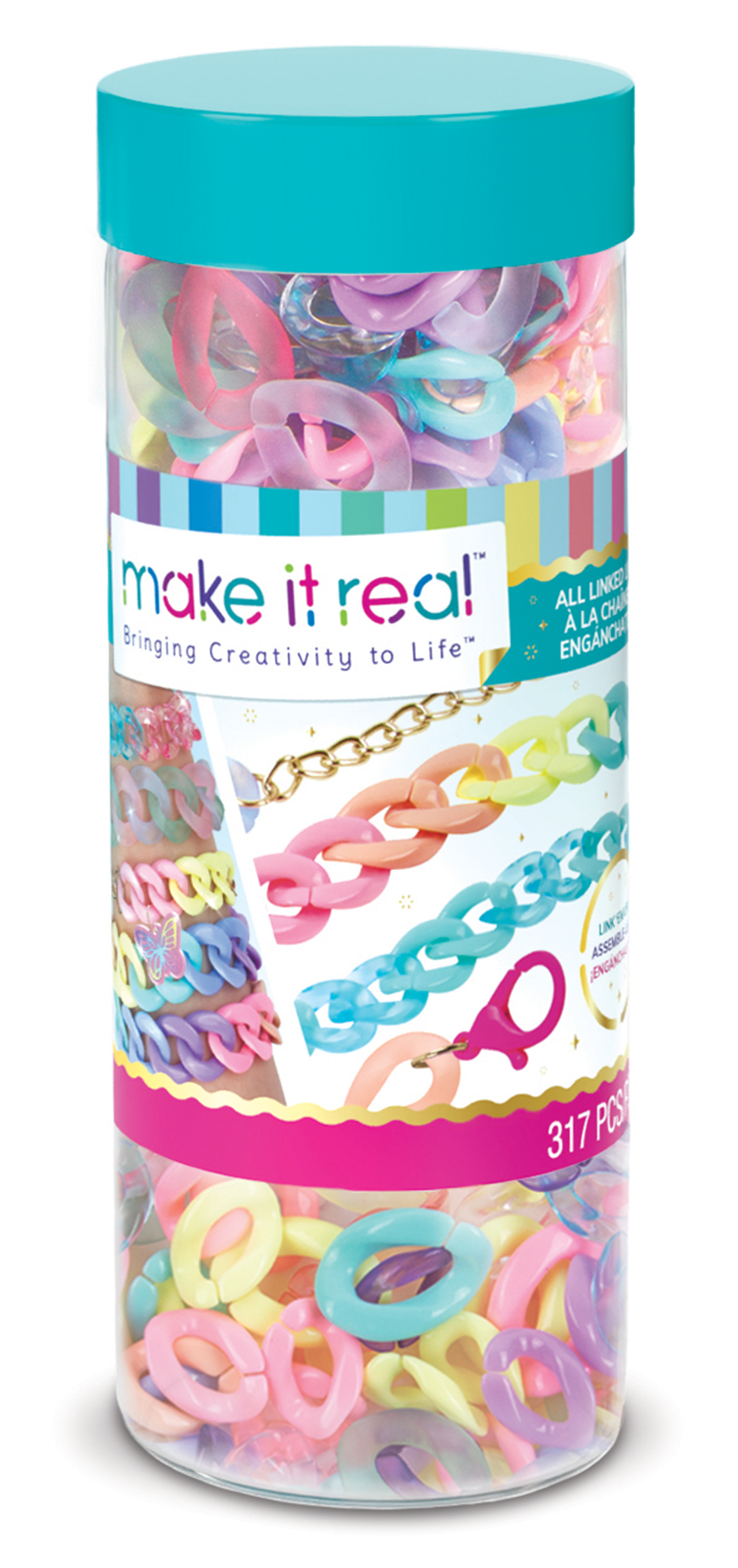 Отрази свой индивидуальный стиль с новым набором для создания браслетов-цепочек от Make it real! Баночка с разноцветными звеньями цепочек откроет тебе двери в мир сказочных украшений. Более 300 матовых, полупрозрачных и непрозрачных пластиковых звеньев различных размеров только и ждут, когда их возмёт в руки юный дизайнер. К набору плилагается шарм в виде бабчоки и декоративные золотистые цепочки. Ты сможешь создать не только браслеты, но и стильный ремешок для сумочки или пояс, или любое изделие, которое подскажет тебе твоя фантазия!