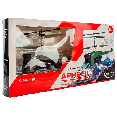 "Вертолёт «Армеец». Новый вертолет ""Армеец"" от ""Властелин Небес"" - это лучшая радиоуправляемая игрушка для юного любителя воздушной техники. Армеец точно впечатлит ребенка своим строгим дизайном и обширным функционалом. ● Трехканальный вертолет выполнен в строгих серо-зеленых цветах; ● Вертолет работает на инфракрасном управлении; ● Вертолет оснащен функцией облёта препятствий; ● Направления движения вертолета: вправо-влево, вперёд-назад; ● Вертолет «Армеец» воспроизводит световые эффекты, благодаря чему погружение в игровой процесс будет еще глубже; ● Пульт удобно лежит в руке, за счет чего управлять вертолетом – одно удовольствие; ● Пульт работает на батарейках АAA (3 шт, не входят в ● комплект); ● Вертолет имеет два скоростных режима; Характеристики: ● Время зарядки: 30 мин; время игры: 6–8 мин. ● Контрольная дистанция пульта 10 м. ● Зарядка от USB; ● Размер игрушки: 21.5*13*6 см; ● Вес игрушки (с пультом) 110 г."