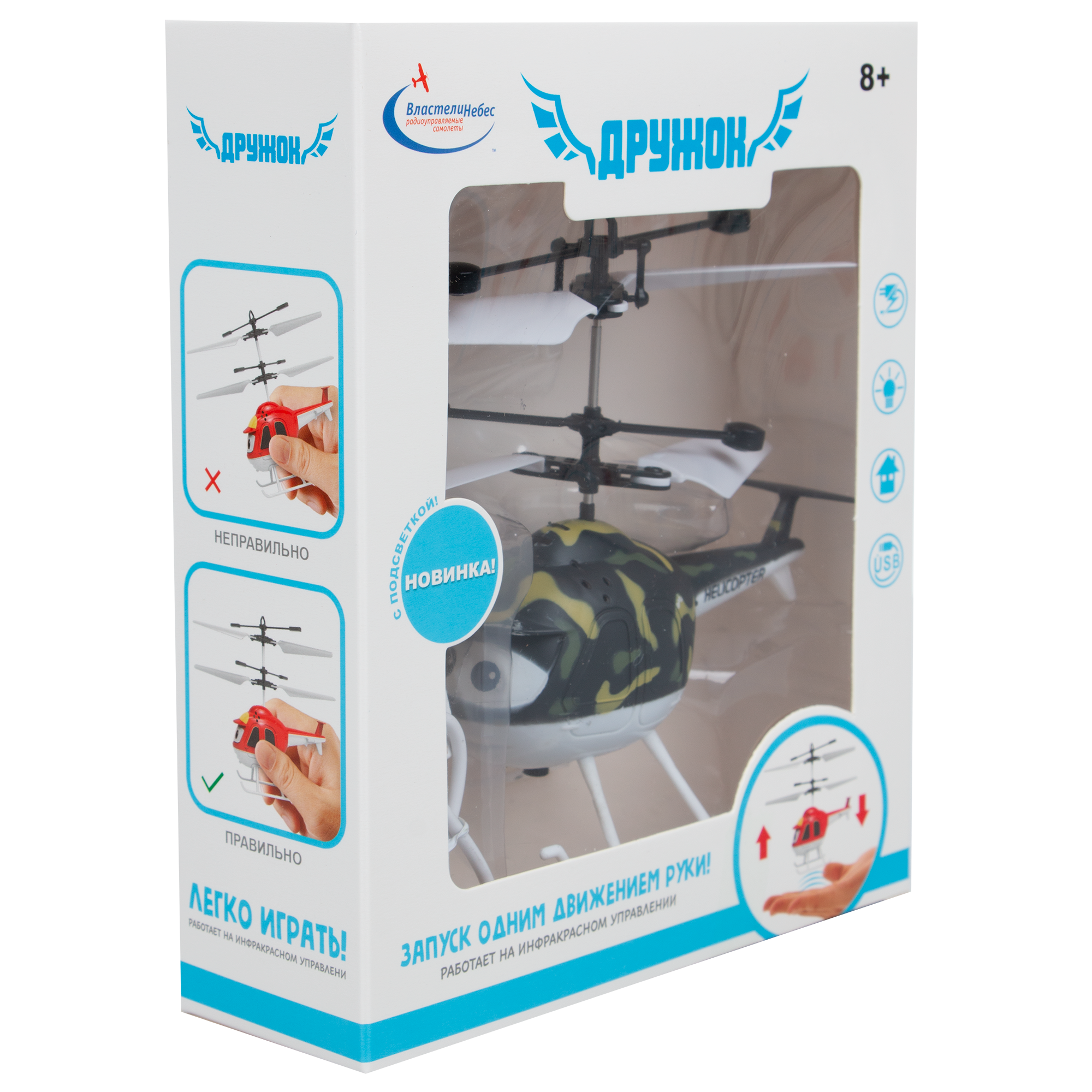 "Многофункциональный вертолет «Дружок» от Властелин Небес станет идеальным подарком для юного любителя летательных аппаратов! Вертолет имеет оригинальный дизайн, работает на инфракрасном управлении, а также компактный размер, который позволит ребенку играть с ним даже в небольших помещениях. • Вертолет работает на инфракрасном управлении; • Цвет вертолета – хаки; В комплект входит: • Вертолет в сборе; • Аккумулятор; • USB-адаптер; Характеристики: • Время игры 5-7 мин; • Время зарядки 40 мин; • Размер игрушки: 10,5 х 10,5 х 2,5 см; • Вес квадрокоптера 23 г; • Тип управления: инфракрасное; • Зарядное устройство: заряжается через USB; • Питание игрушки: литиевый аккумулятор 3,7В (в комплекте); • Материал: высокопрочный пластик и металл; • Предназначен для игры в помещении; • Рекомендованный возраст: 8+0"