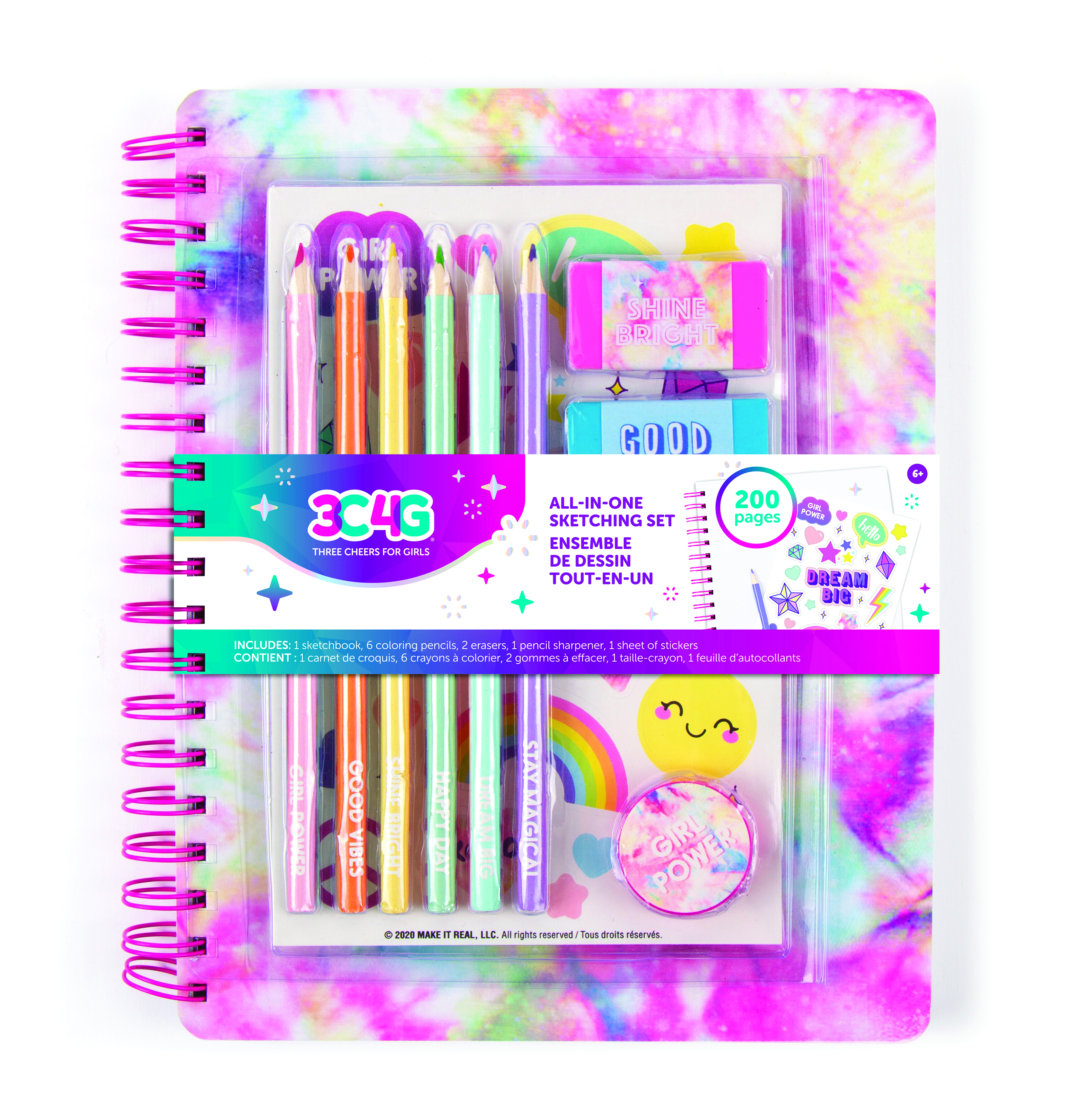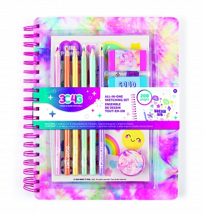 Прояви свои уникальные творческие способности с крутым набором от Make it real! Новый набор для рисования в стиле Тай-дай пастель включает в себя всё необходимое для создания ярких и креативных рисунков! В комплект входят: скетчбук, шесть пастельных цветных карандашей, два ластика, точилка для карандашей и лист стикеров. Это идеальный набор для девочек, увлекающихся искусством, ведь он поможет развить юным художницам их творческие навыки и выразить индивидуальность. Исследуй мир цвета и дизайна с новым универсальным набором от Make it real!