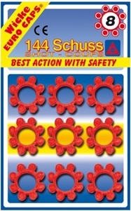 Не стоит беспокоиться, если с собой достаточное количество пистонов, то грандиозные сражения с участием полицейских, шерифов и гангстеров завершатся успешно. • Игрушечные пистоны отлично имитируют звуки выстрелов • Включают в себя 144 пистона, рассчитанных для 8-зарядного оружия • Европейское качество: производство Германия • Блистерная упаковка