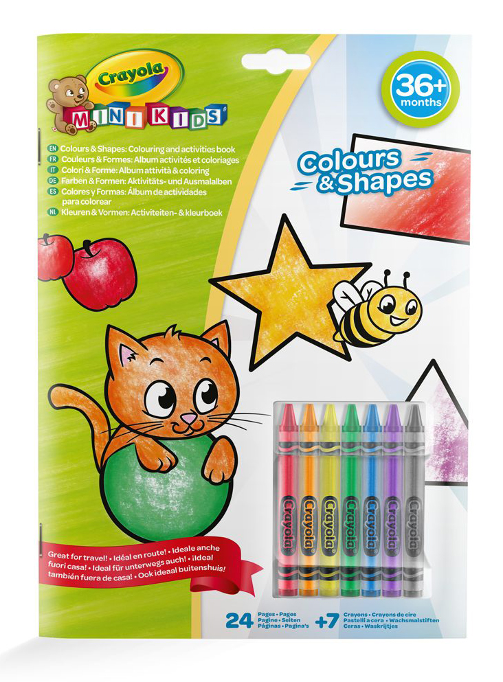 Новая книжка-раскраска от Crayola ""Цвета и Формы "" с восемью мелками точно произведет на малыша впечатление! Этот набор объединяет раскрашивание и изучение форм, предоставляя детям возможность весело учиться и развивать творческие навыки. • Книжка имеет оригинальный дизайн, который сочетает изучение форм и раскрашивание, что помогает детям в обучении через игру; • В комплекте идут 8 ярких восковых мелков, которые идеально подходят для раскрашивания и подчеркивания деталей на страницах; • Интерактивные задания позволяют детям весело осваивать различные формы, улучшая свои знания и развивая воображение; • Набор способствует развитию мелкой моторики и творческих навыков, помогая детям выражать себя через искусство. Характеристики: • Рекомендованный возраст: 3+; В комплекте: • Книжка-раскраска с заданиями и 8 восковых мелков.