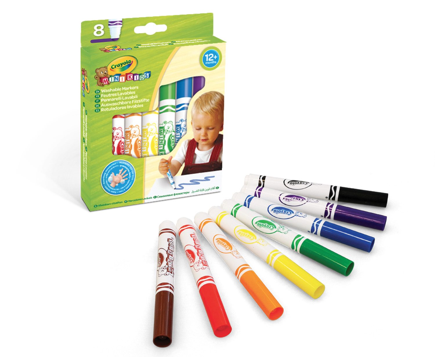 Этот набор Crayola – известный во всем мире производитель товаров для детского творчества, - создала специально для самых юных художников. Удобный корпус фломастера надежно фиксируется в маленькой ладошке, а закругленный кончик не вдавливается, как в более дешевых аналогах. Фломастеры рисуют широкие яркие линии – то, что нужно малышам! Безопасные красители, которые входят в состав фломастеров, не вызывают аллергии или раздражения на нежной детской коже. Они подойдут и для самых маленьких, которые всё стремятся попробовать на вкус. Для родителей же приятен будет тот факт, что эти фломастеры отлично смываются - с кожи, одежды, мебели и стен.