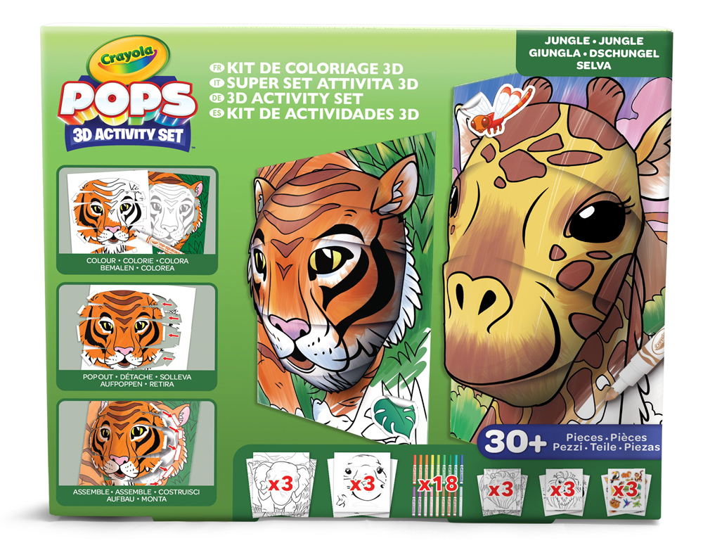 Крутой набор для творчества от Crayola — это отличный подарок для ребенка! С ним ребенок сможет создать свои собственные объемные фигурки животных из джунглей! Оригинальный набор включает карточки разных размеров и множество инструментов для того, чтобы ребенок мог творчески выражаться, создавая фигуры своих любимых животных. • Набор включает 3 карточки размера 30 x 37 см и и 3 карточки 25 x 21,6 см, что позволяет создать впечатляющие 3D-фигуры животных; • 7 тонких маркеров позволят добавить яркие и детализированные цвета каждой фигуре, делая процесс раскрашивания увлекательным; • Клейкая лента и инструкции обеспечивают простоту и легкость сборки, позволяя ребенку самостоятельно построить своих джунглевых существ; • Развивает воображение и творческие навыки, помогая детям создавать уникальные фигуры и улучшать мелкую моторику; Характеристики: • Рекомендованный возраст: 3+. В комплекте: • 3 карточки размера 30 x 37 см, 3 карточки размером 25 x 21,6 см, 7 тонких маркеров, клейкая лента и инструкции;