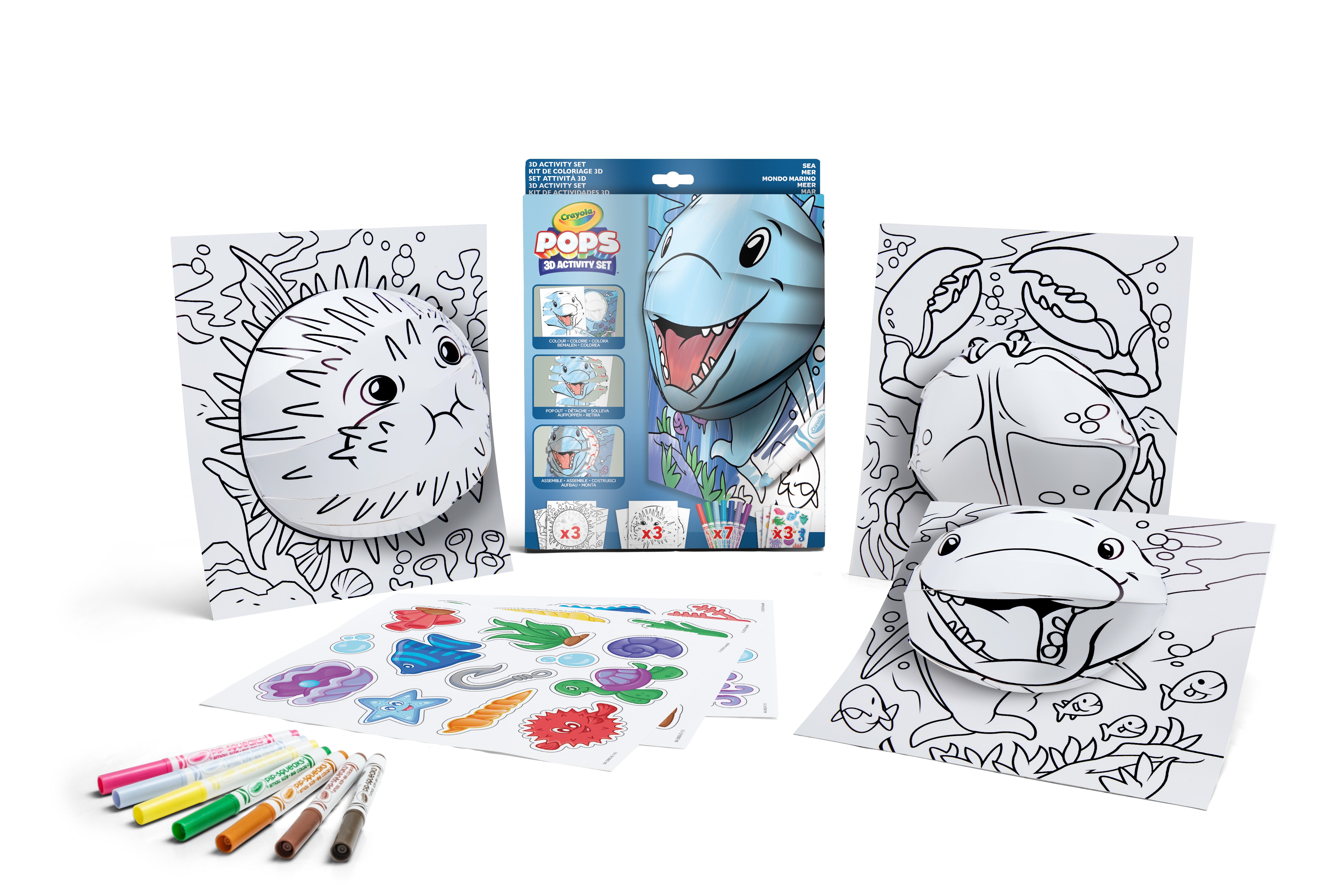 Набор для творчества от Crayola ""Море"" — это идеальный способ для детей создать свои собственные объемные фигуры морских животных! С помощью этого набора ребенок сможет собрать и раскрасить удивительных существ, погружаясь в подводный мир фантазий. • Набор включает 3 объемные карточки для сборки морских животных, которые можно собрать в формате 3D, создавая увлекательные фигуры; • 7 тонких маркеров позволят добавить яркие цвета и детали каждому морскому существу, делая процесс раскрашивания интересным и творческим; • Клейкая лента и инструкции помогают легко собрать все детали вместе, что делает творчество увлекательным и доступным для детей; • Развивает творческие навыки и воображение, улучшая моторику и предоставляя детям возможность самовыражения через искусство; Характеристики: • Размер карточек: 25 x 21,6 см; • Рекомендованный возраст: 3+. В комплекте: • 3 карточки для сборки, 7 маркеров, клейкая лента, инструкции;