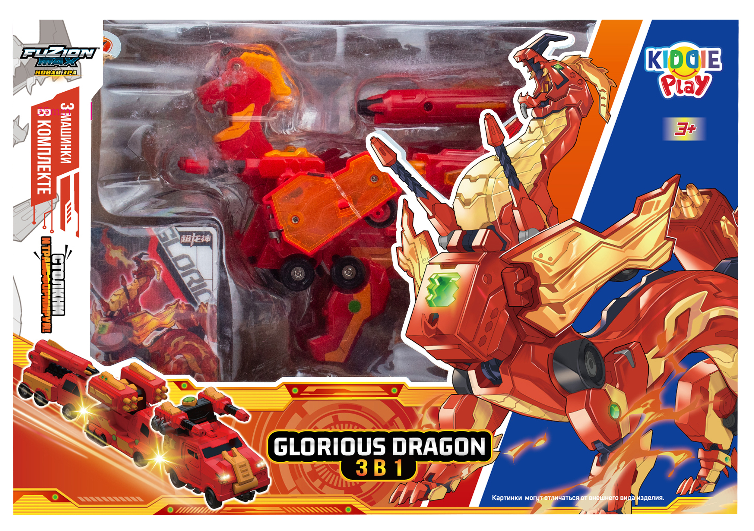 Игровой набор Fuzion Max Glorouus Dragon от KiddiePlay станет отличным подарком для юного любителя роботов. Набор выполнен по мотивам известного одноименного мультфильма, что позволит малышу погрузиться в мир любимых персонажей. • Игрушка имеет очень интересный функционал – при столкновении трёх машин игрушка трансформируется в большого боевого робота; • Одноименный герой из мультсериала Fuzion Max; • Фигурка Glorouus Dragon имеет уникальный и продуманный дизайн; • Игрушка без особых усилий легко трансформируется обратно в машины; • Машинками можно играть как отдельными друг от друга игрушками; • Совместимость с другими наборами Fuzion Max позволяет детям расширить свою коллекцию и устраивать командные сражения, комбинируя различные фигурки; • В процессе игры дети развивают координацию движений, воображение и навыки стратегического мышления, придумывая тактики для победы. Характеристики: • Рекомендованный возраст: 3+. В комплекте: • Три машинки красно-оранжевого цвета, трансформирующиеся в робота.