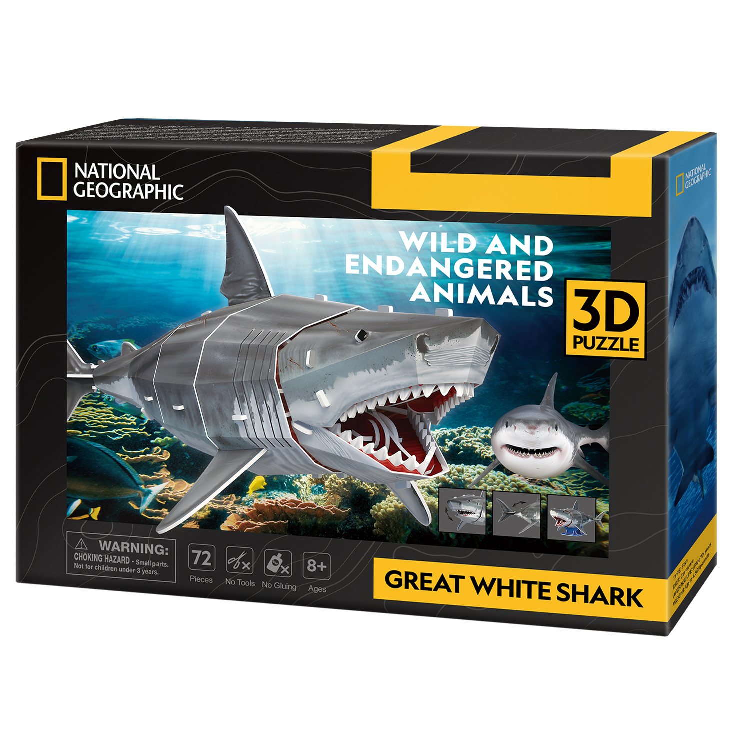 3D пазл Сubic Fun National Geographic «Большая белая акула» – захватывающая головоломка для любителей морских глубин. Погрузитесь в мир океанских хищников с этим объемным пазлом, состоящим из 72 деталей. Реалистичная модель большой белой акулы с детальной проработкой чешуи и плавников станет настоящим вызовом для любителей сложных головоломок и эффектным украшением интерьера. Этот конструктор – идеальный оригинальный, необычный и интересный подарок для детей от 8 лет и взрослых, увлекающихся головоломками и сборными моделями. Детали легко соединяются без клея, развивая при этом логику, пространственное мышление и мелкую моторику. Совместная сборка превратится в увлекательный семейный вечер, а готовая акула займет достойное место в коллекции или станет оригинальным новогодним подарком. Большая сборная модель подойдет как детей, так и для взрослых, а также станет полезным подарком для любителей интересных увлечений и хобби. В комплекте – все необходимые детали и инструкция для сборки. Выбирайте полезные подарки развивающих пазлов от Сubic Fun – яркие, качественные и познавательные!