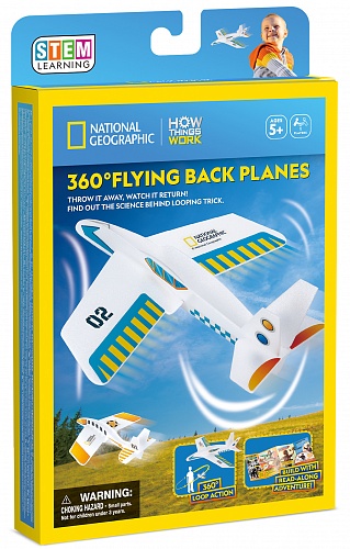 Новая захватывающая игрушка ""Самолеты с функцией бумеранг"" от CubicFun в коллаборации с National Geographic познакомиться с базовыми принципами аэродинамики. Специально разработанная форма и конструкция самолета позволяют ему совершать полный круг и возвращаться к отправной точке. Самолеты имеют оригинальный дизайн, который сразу привлечет к себе внимание. Просто запустите самолет в воздух, и он сам выполнит круговое движение. Игра с самолетами способствует развитию моторики, координации, и пониманию принципов аэродинамики. Игрушка идеально подходит для игр на открытом воздухе, в парках и на пляжах. Как играть: • Держите самолет за корпус, убедитесь, что вокруг достаточно пространства для его полета; • Направьте самолет в выбранном направлении под легким углом вверх; • С силой, но аккуратно, бросьте самолет вперед, стараясь не придавать ему сильное вращение; • Наблюдайте, как самолет летит по круговой траектории и возвращается обратно. Характеристики: Размер модели: 22 x 21.5 x 7 cm x 2; Рекомендованный возраст: 5+
