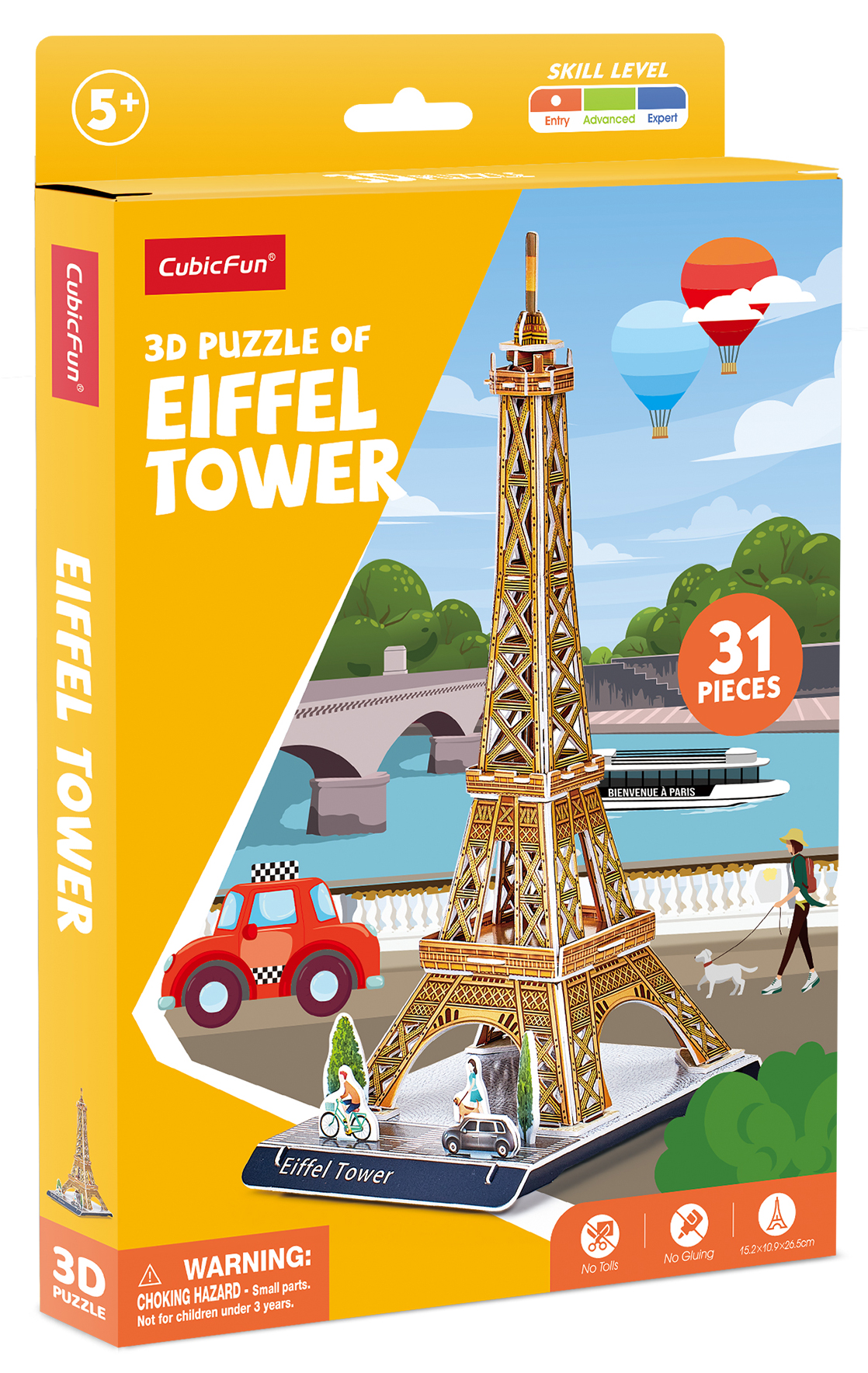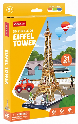 Париж в своей квартире - как вам такое? С новым 3D Пазлом от CubicFun вы сможете реконструировать всемирно известную достопримечательность - Эйфелеву башню. Идеально проработанные детали пазла сделают его прекрасным украшением для любой коллекции. Пазл развивает мелкую моторику, память и внимание ребенка. 3Д Пазл является уменьшенной копией реальной Эйфелевой башни, имеет высокую детализацию. Игрушка станет отличным подарком по любому поводу как для ребенка, так и для взрослого. Легко собирается без дополнительных инструментов, ножниц и клея. Пазл изготовлен из качественных материалов. В набор входят фигурки двух прохожих и одна машина. Количество деталей пазла – 31 шт.; Рекомендованный возраст: 5+ Размер модели: 15,2 x 31,5 x 26,5 см Размер упаковки: 16 х 1,8 х 25 см