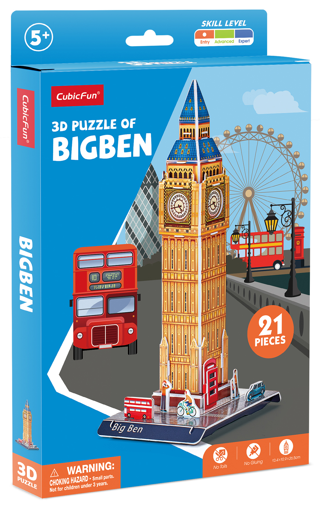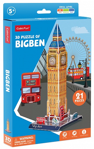 Каждый любитель английских традиций будет восторге от такого подарка! Соберите у себя дома всемирно известную достопримечательность – Биг-Бен. Детально проработанные детали пазла сделают его прекрасным украшением для любой коллекции. Пазл развивает мелкую моторику, память и внимание ребенка. 3Д Пазл является уменьшенной копией реальной достопримечательности, имеет высокую детализацию. Игрушка станет отличным подарком по любому поводу как для ребенка, так и для взрослого. Легко собирается без дополнительных инструментов, ножниц и клея. Пазл изготовлен из качественных материалов. В набор входят фигурки трех прохожих, одна машина и двухэтажный автобус. Количество деталей пазла – 21 шт.; Рекомендованный возраст: 5+ Размер модели: 15,2 x 31,5 x 26,5 см Размер упаковки: 16 х 1,8 х 25 см