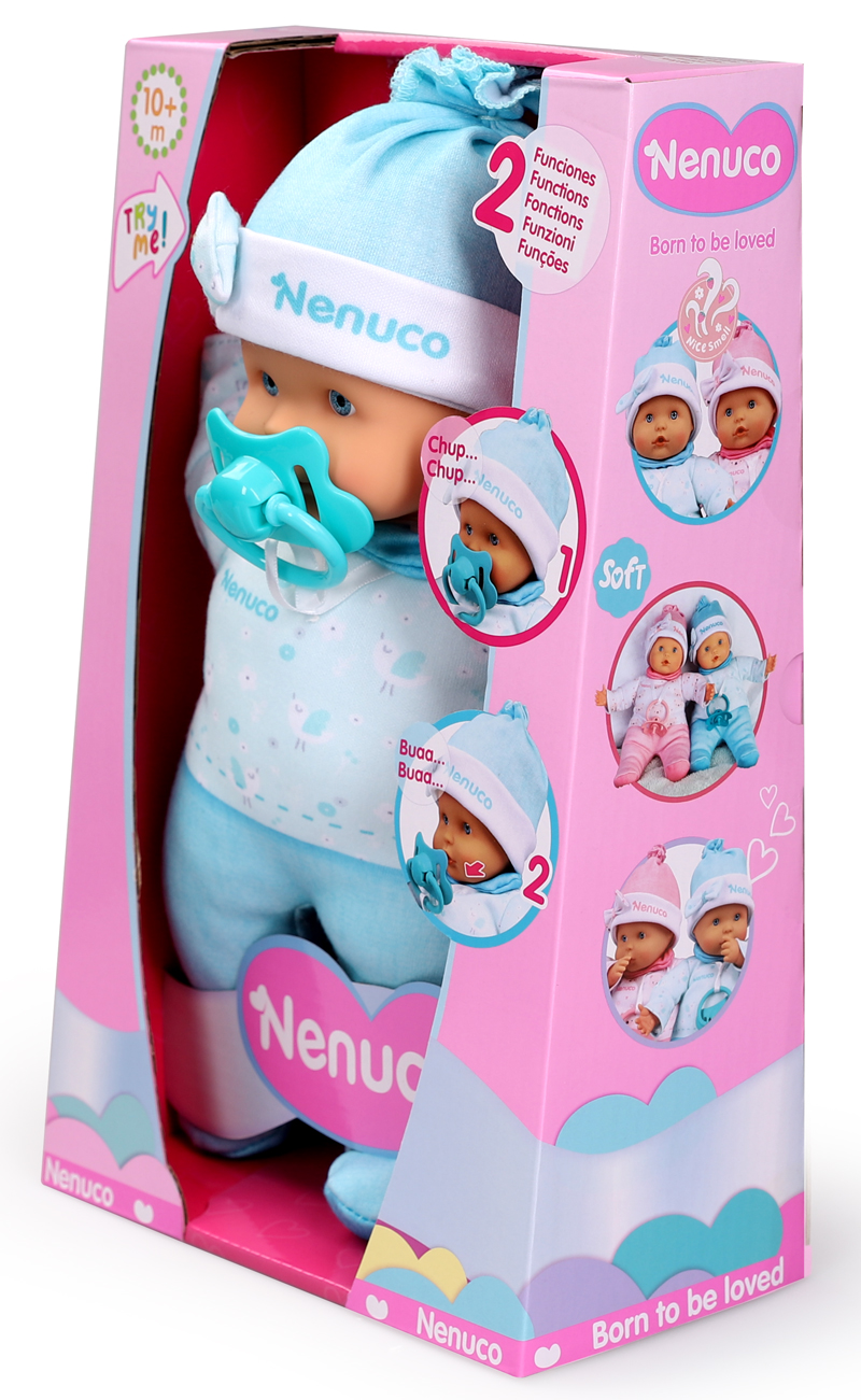 Мягкий пупс Nenuco мальчик с 2-мя функциями от Famosa – то, что нужно для малыша. Крутой дизайн пупса в сочетании с звуковыми эффектами делает его отличным подарком для девочки по любому поводу. • Игрушка имеет оригинальный дизайн – выполнена в виде малыша в ярком комбинезоне и шапочке; •Пупс имеет 2 функции: Когда во рту у пупса пустышка, которая идет в комплекте, он издает характерные звуки, если пустышку вытащить – начинает плакать. Может держать пальчик во рту, как настоящий малыш; • Пупс имеет подвижные ручки и голову; • Игрушка развивает мелкую моторику, фантазию и способствует развитию социальных навыков при игре с друзьями; • Пупс представлен в ассортименте – собери всю коллекцию малышей. Характеристики: • Рекомендуемый возраст: 10 мес+.