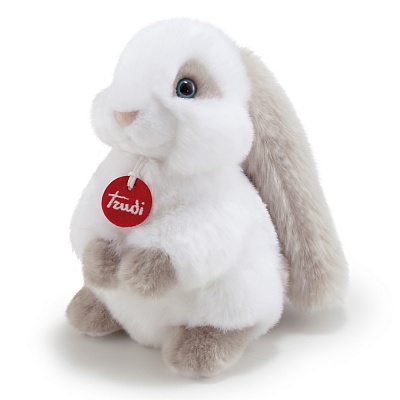 Бело-серый кролик Клемент, 13x20x17см. Милый кролик Клемент присел на задние лапки в ожидании своего нового хозяина. Окраска кролика сразу привлекает к себе внимание – белоснежные спинка, животик и голова красиво сочетаются с милыми бежевыми лапками, а мягкие ушки и добрый взгляд игрушки делает ее идеальным подарком для ребенка. Играть с кроликом - одно удовольствие, ведь у него такая мягкая и приятная шерстка! На шее кролика красуется красный кулончик с логотипом Trudi. Благодаря небольшому размеру кролика можно брать с собой в любую поездку - любимая игрушка ребенка всегда будет рядом с ним! Рекомендованный возраст: 3+