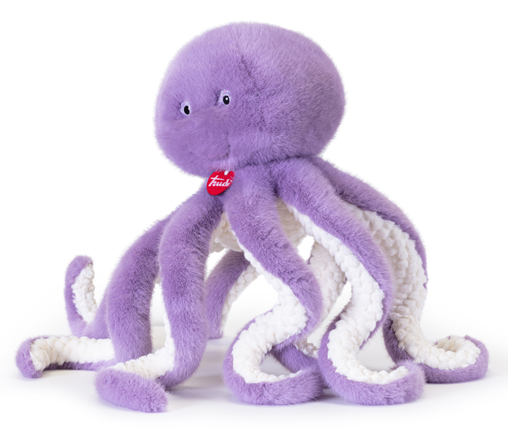 Время подводных приключений! С новой большой игрушкой от Trudi ребенок познакомится с известным морским созданием – осьминогом. Игрушка ручной работы сразу привлекает к себе внимание оригинальным дизайном, продуманным в лучших традициях известного итальянского бренда, а также приятным, лиловым окрасом. К очаровательной игрушке осьминога пришит красивый кулончик с логотипом Trudi, который придает ей премиальный статус и подчеркивает высокое качество изготовления. Плюшевая игрушка очень мягкая и тактильно приятная, поэтому ребенок просто не захочет с ней расставаться! Мягкие игрушки Trudi можно стирать, они не деформируются, и сохранят свой вид даже после стиральной машинки. Если она замялась в упаковке или после стирки, её необходимо встряхнуть и расчесать. Игрушка внутри набита гипоаллергенным наполнителем, поэтому она полностью безопасна для детей. Итальянский бренд Trudi с особой любовью и заботой создаёт свои мягкие игрушки. Каждая игрушка от Trudi имеет свое имя, свою историю и свой характер. Осьминог станет отличным подарком на любой праздник или день рождения как ребенку, так и взрослому, либо же прекрасно впишется в декор вашего интерьера. Размер игрушки 62x85x62. Рекомендованный возраст: 3+