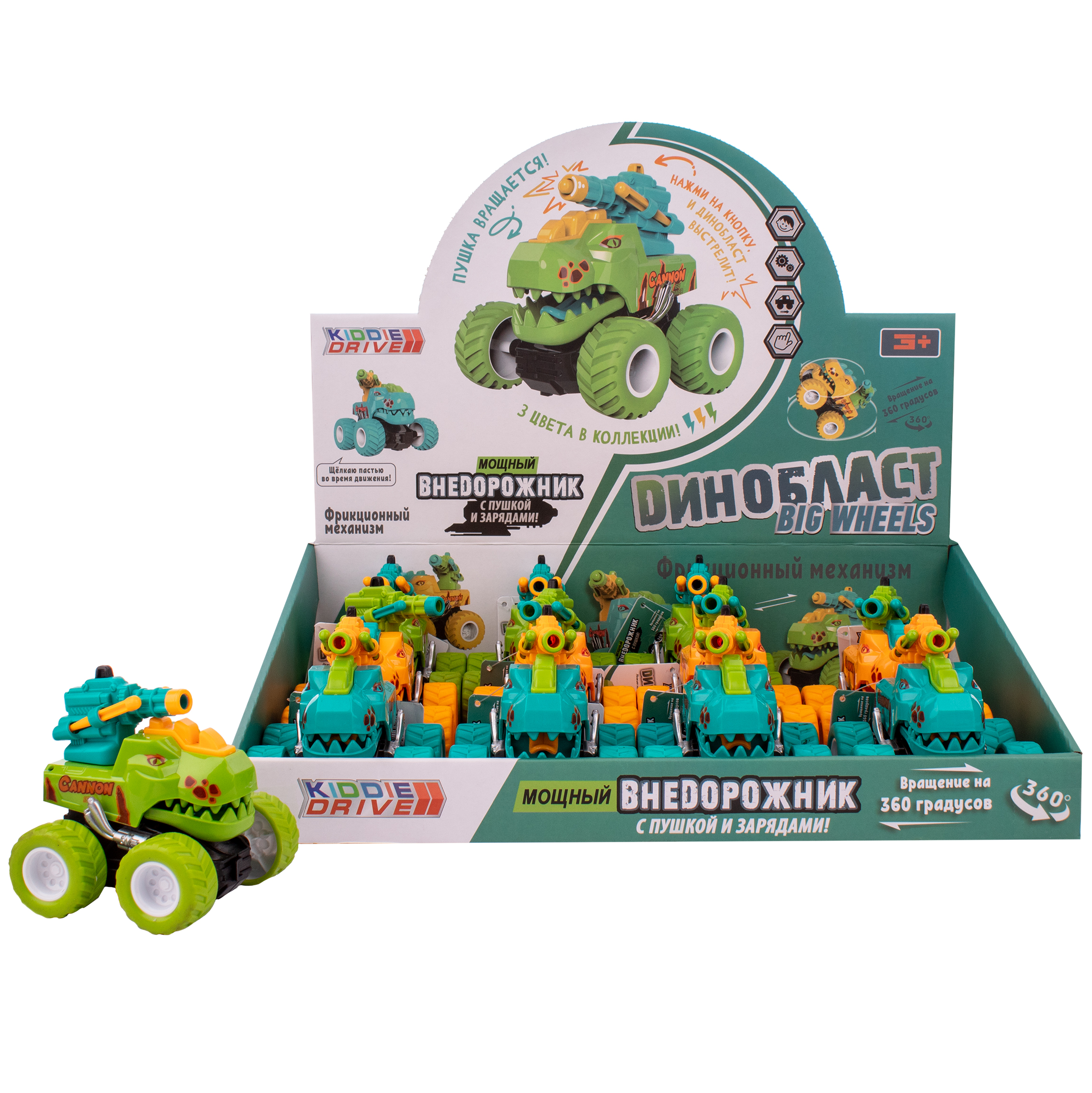 «Динобласт Big wheels» — это идеальный подарок для ребенка, который обожает играть с машинками и динозаврами. Машинка выполнена в виде динозавра, ее уникальный дизайн и отличный функционал не оставят равнодушным ни одного юного исследователя! • «Динобласт Big wheels» имеет фрикционный механизм и двигает челюстью при движении, а также оснащен пушкой, которая может стрелять двумя зарядами. • Игрушка поможет ребенку развивать фантазию и творческие способности. • Ребенок будет в восторге, наблюдая, как мощная дино-тачка с легкостью преодолевает препятствия на своем пути. Характеристики: • Рекомендованный возраст: 3+