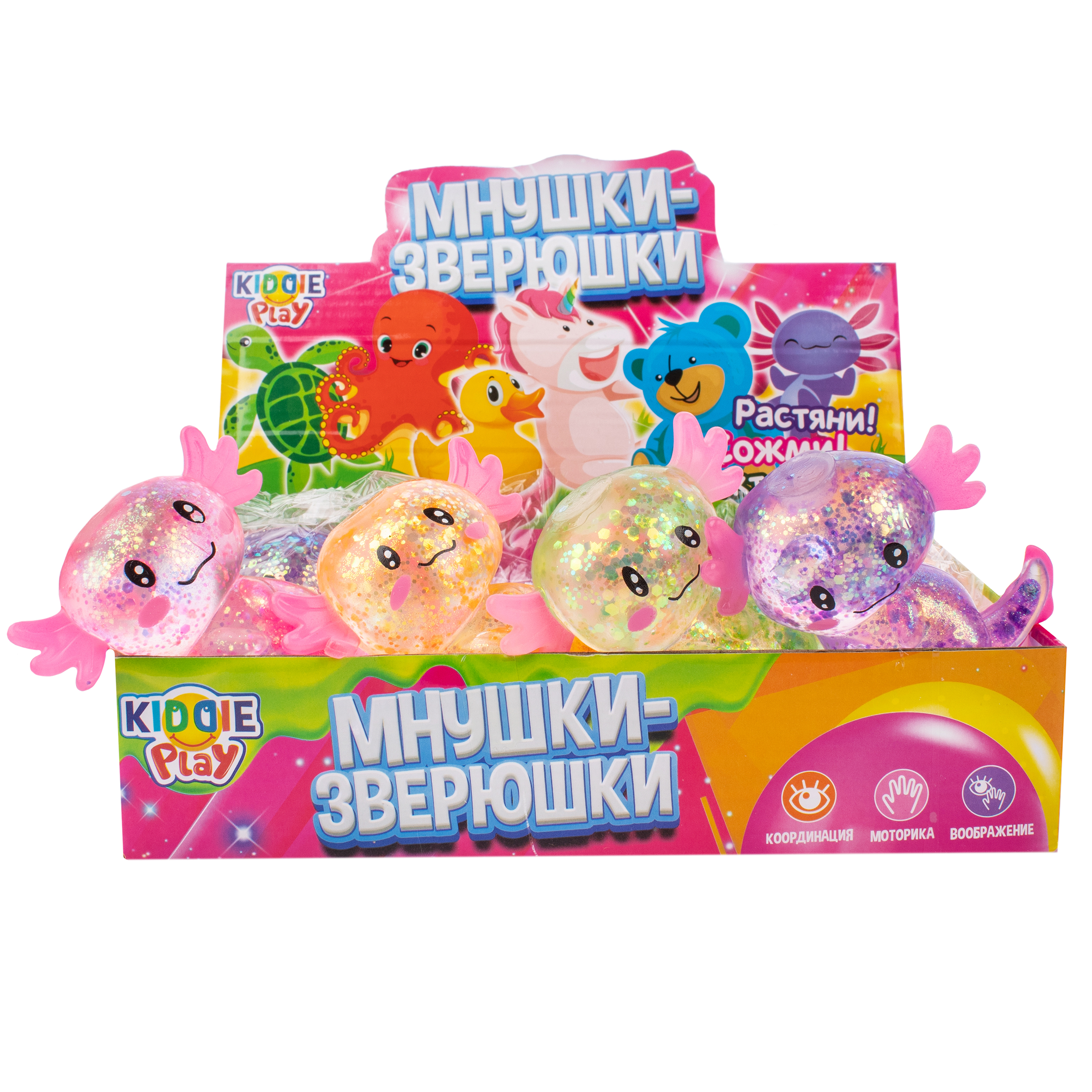 Сквиш с блестками в форме веселых животных, с эффектом памяти формы. Развивает мелкую моторику, игрушка анти - стресс.