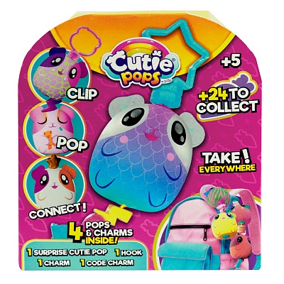 Яркая и милая плюшевая игрушка-сюрприз Cutie Pops станет отличным подарком для девочки. Эта необычная игрушка-подвеска выполнена из приятного на ощупь материала, благодаря чему ребенок просто не захочет с ней расставаться. • Для маленькой принцессы будет сюрпризом, какой попадется Cutie Pop, игрушка упакована в яркую загадочную коробку; • Помимо игрушки, в наборе можно найти интересный шарм, с помощью которого девочка может дополнять свой образ; • Каждая игрушка оснащена клипсой, чтобы девочка могла украсить свой рюкзак и сумочку или использовать в качестве брелока; • Цепляйте игрушки друг за друга, создавая уникальную комбинацию; • Скачайте игру Cutiland, ищите кодовый амулет внутри упаковки, активируйте код в видеоигре и получите эксклюзивные призы; • В коллекции Cutie Pops 24 милашки и 24 шарма для множества уникальных комбинаций, соберите их все! В комплекте: • 1 игрушка; • 1 карабин; • 1 пластиковый шарм; • 1 амулет с кодом. Характеристики: • Рекомендованный возраст: 5+