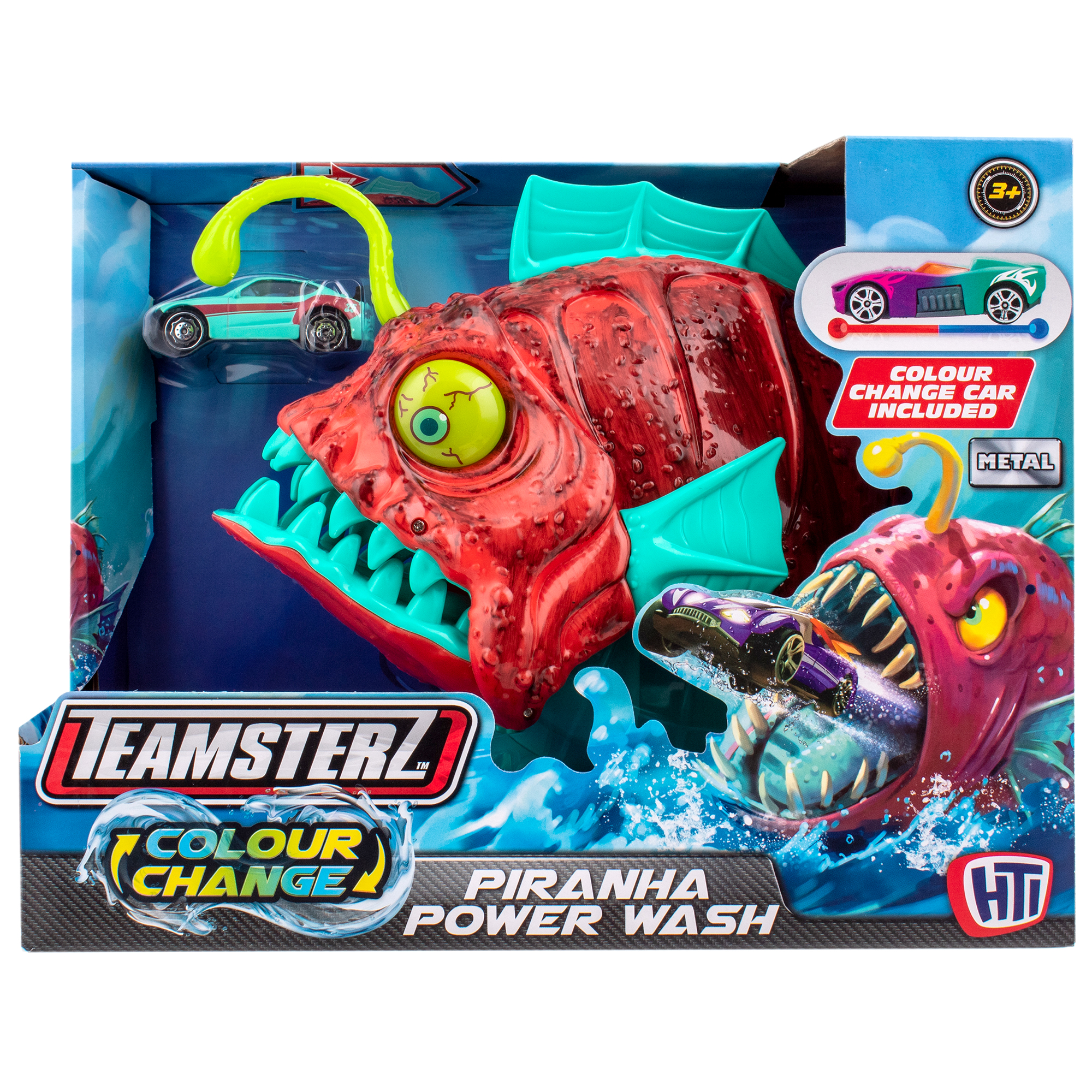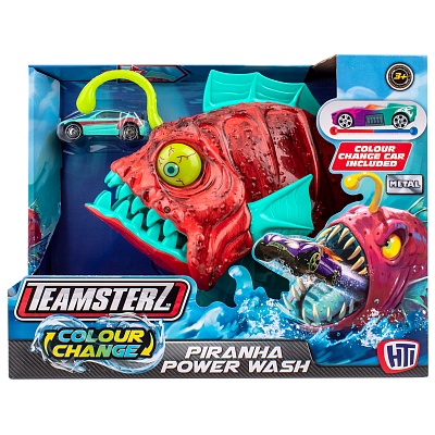 Автомойка "Пиранья" из коллекции Teamsterz Color Change Collection – это то, что нужно юному любителю гонок. Наполните емкость для воды теплой или ледяной водой, направьте ее в машинку с помощью хвостового плавника и посмотрите, как цвет машинки магическим образом изменится внутри живота голодной пираньи. Затем оттяните плавник, чтобы открыть челюсти и выпустить машинку уже совсем другого цвета. Краска меняет цвет при помощи температуры. • Игрушка имеет оригинальный дизайн – выполнена в виде яркой пираньи; • Машинка в комплекте меняет цвет с красного на зелёный при погружении в горячую или холодную воду; • Игрушка развивает мелкую моторику, фантазию и способствует развитию социальных навыков при игре с друзьями; • Трек совместим с другими машинками от Teamsterz; • Компактный размер машинок позволяет брать их с собой куда угодно, чтобы продолжать увлекательные приключения в дороге или дома. Характеристики: • Рекомендованный возраст: 3+ В комплекте: • Игрушка-пиранья, машинка, меняющая цвет.
