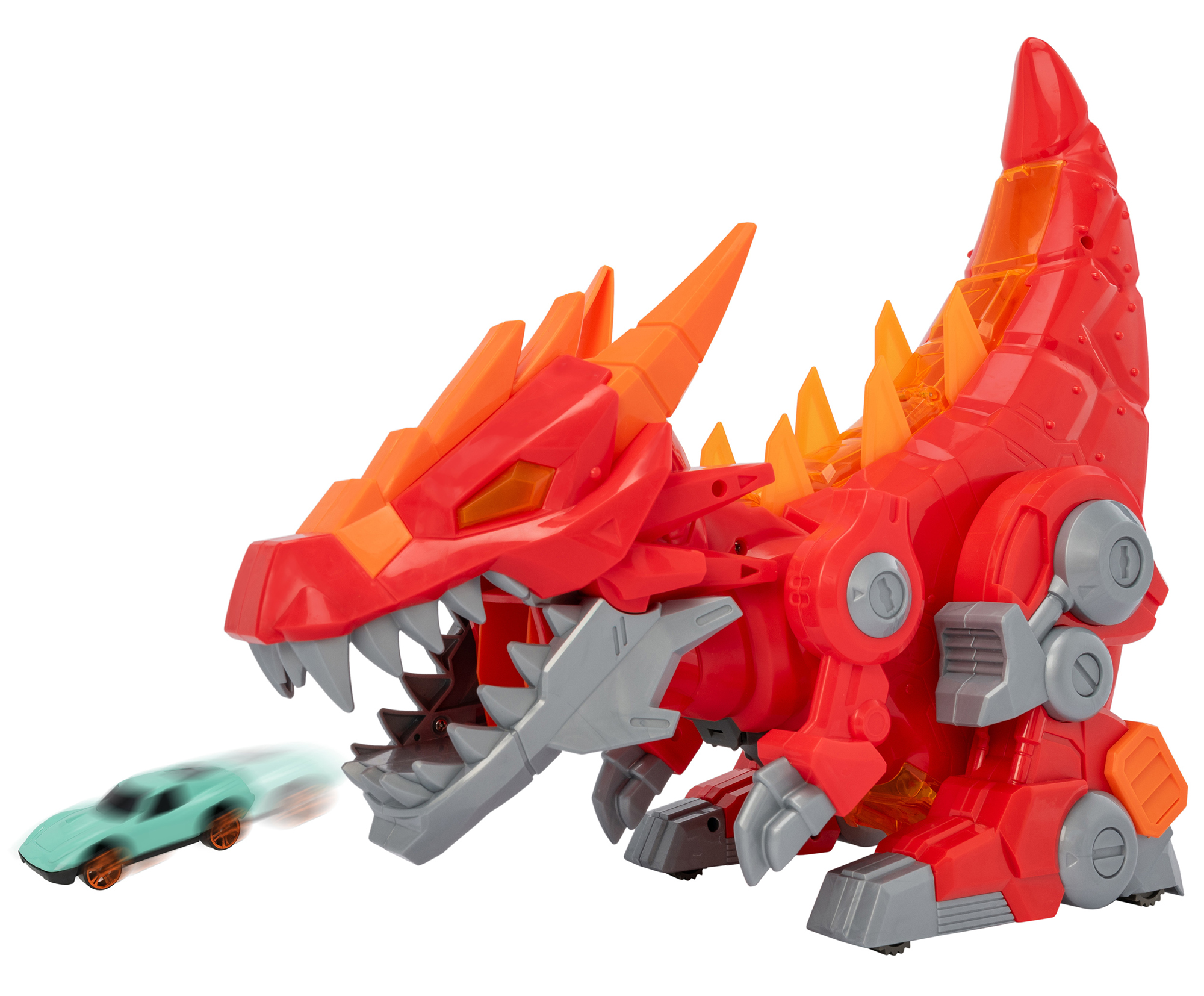 Игровой набор "Робот-дракон" от Teamsterz — это захватывающая игрушка, которая точно придется по вкусу любителям крутых и быстрых тачек! Благодаря своему яркому дизайну в виде робота-дракона она создаст атмосферу настоящих приключений и точно придется по вкусу ребенку. • Трек имеет оригинальный дизайн: представляет собой красного робота-дракона; • Игрушка шагает, приседает и выпускает машинки из своей пасти; • Реалистичные звуки и светящиеся глаза придают игровому процессу большей реалистичности; • Трек включает в себя механизмы и подвижные части, которые делают игру более динамичной и захватывающей для маленьких гонщиков; • Дракон запускает до 2 машин подряд; • Специальный отсек позволяет хранить 2 машинки; • Размер игрушки позволяет легко использовать ее как в помещении, так и на улице, а также удобно брать с собой в поездки или на прогулки. Характеристики: • Рекомендованный возраст: 3+ В комплекте: • Робот-дракон, металлическая машинка, инструкция, батарейки АА - 4 шт.